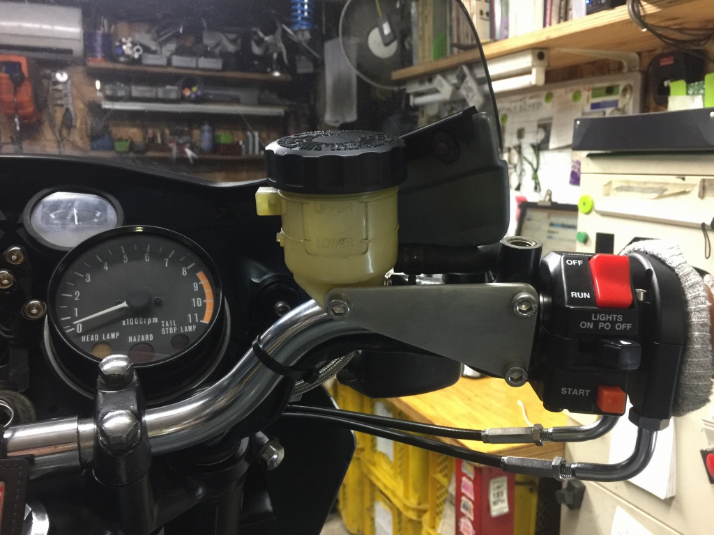 カウルを付け、邪魔にならない位置にフロントマスターのリザーバーをセットします。