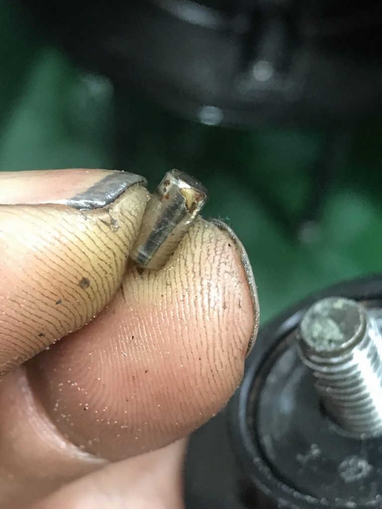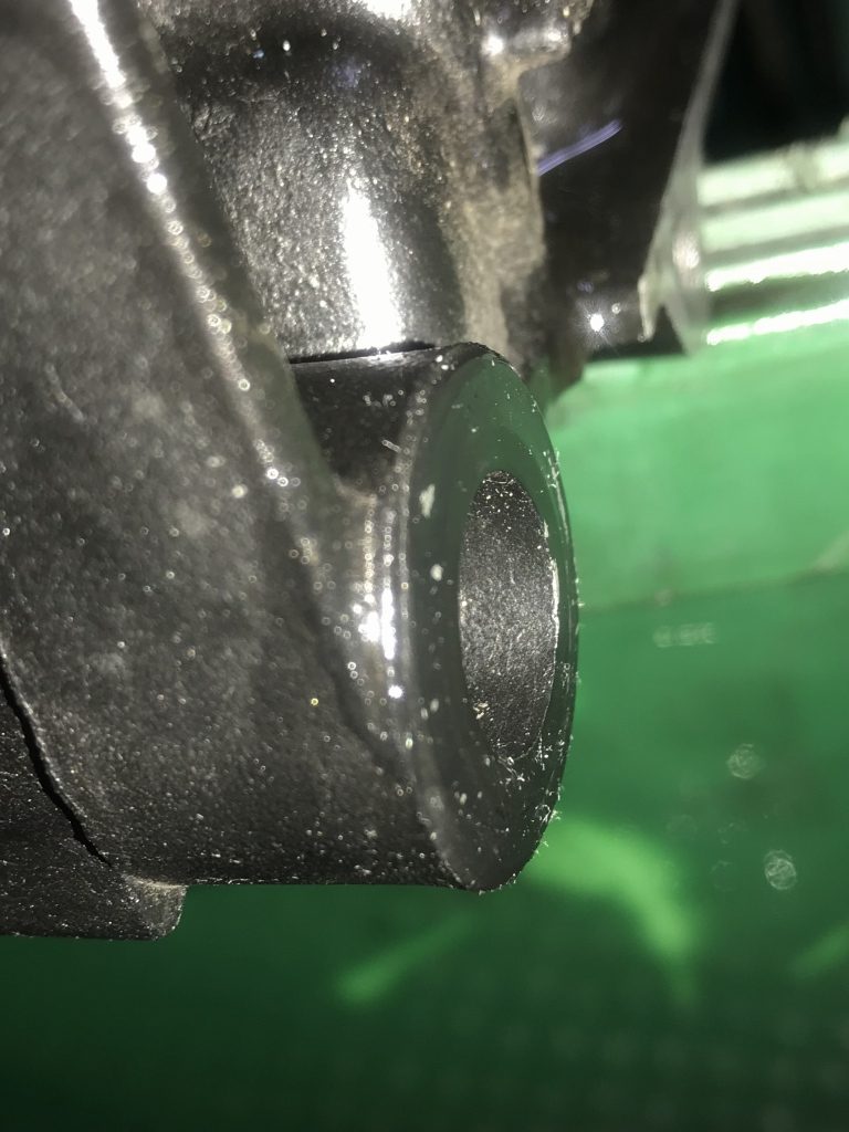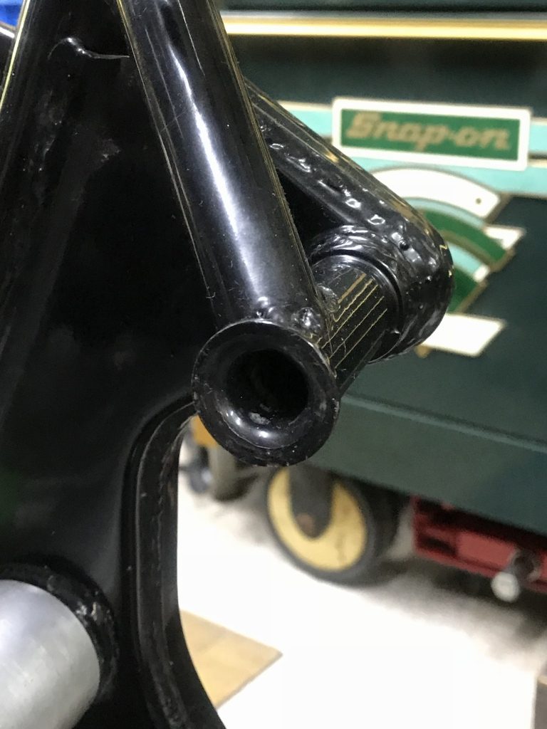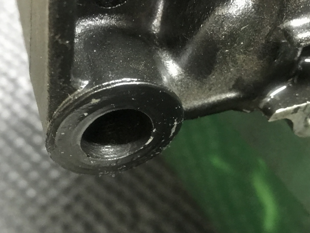 相手方のフレームは、S1タイプの補強になっていますが、使われているカラーは純正のラッパ状のものでした。これでは摩耗を止められません。