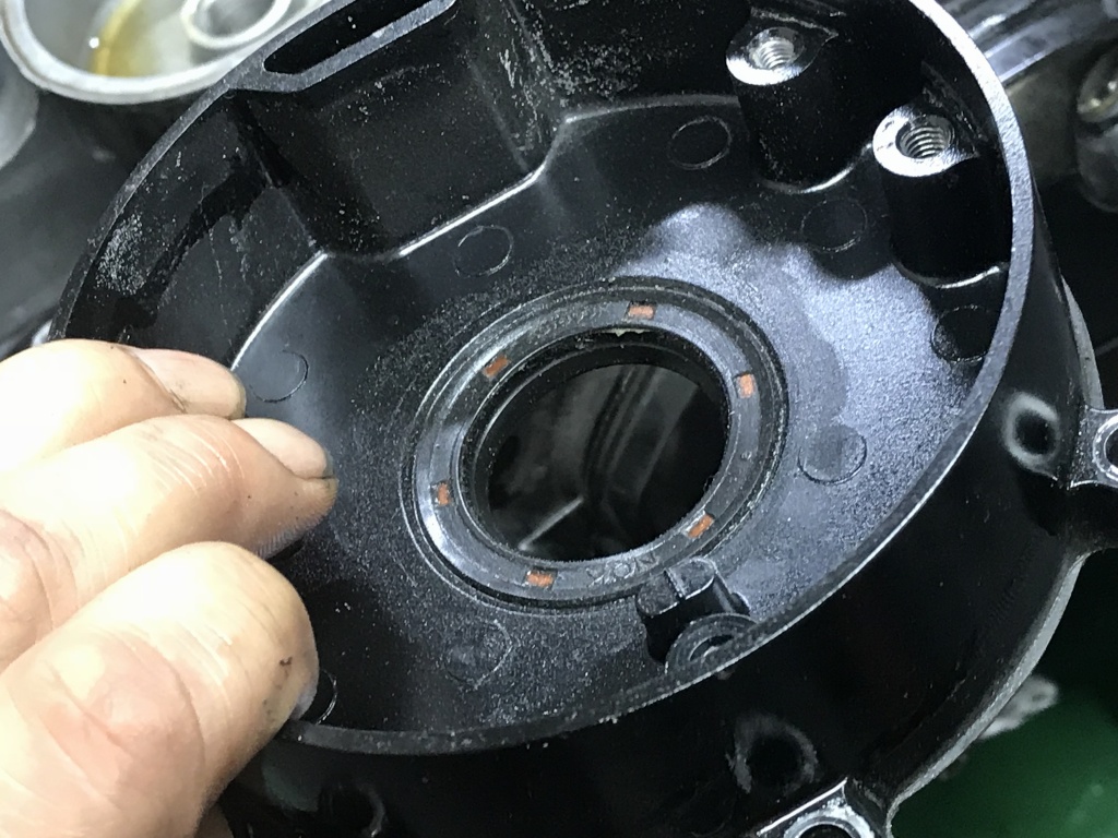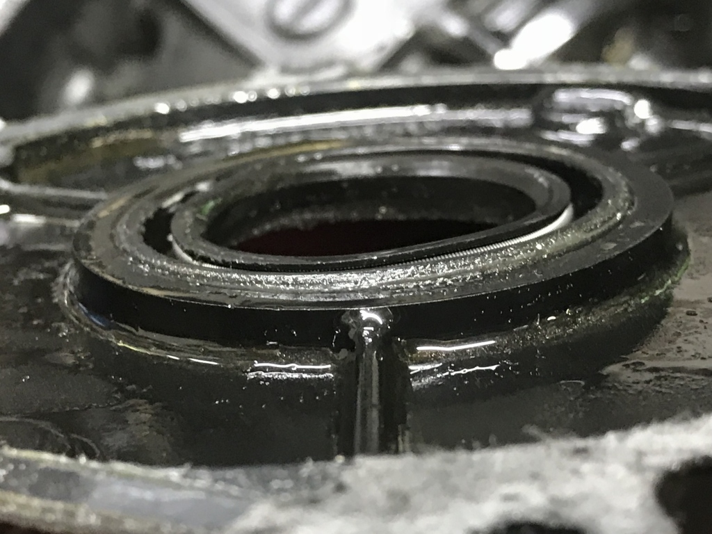 シフトシャフトのオイルシールは、リップの一部がめくれて入っていました。