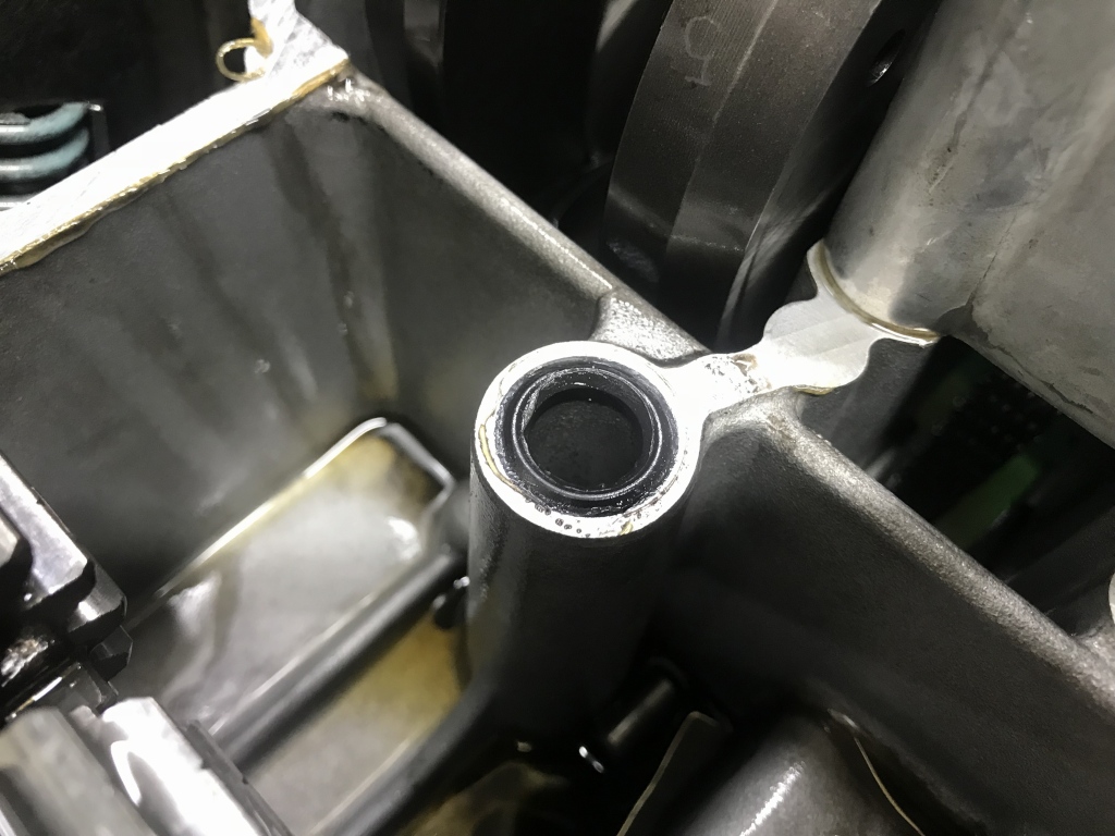 特にこちらは、はみ出した液体ガスケットの破片がオイル通路を流れた場合、下流に詰まって焼き付きなどのダメージを与えてしまいます。