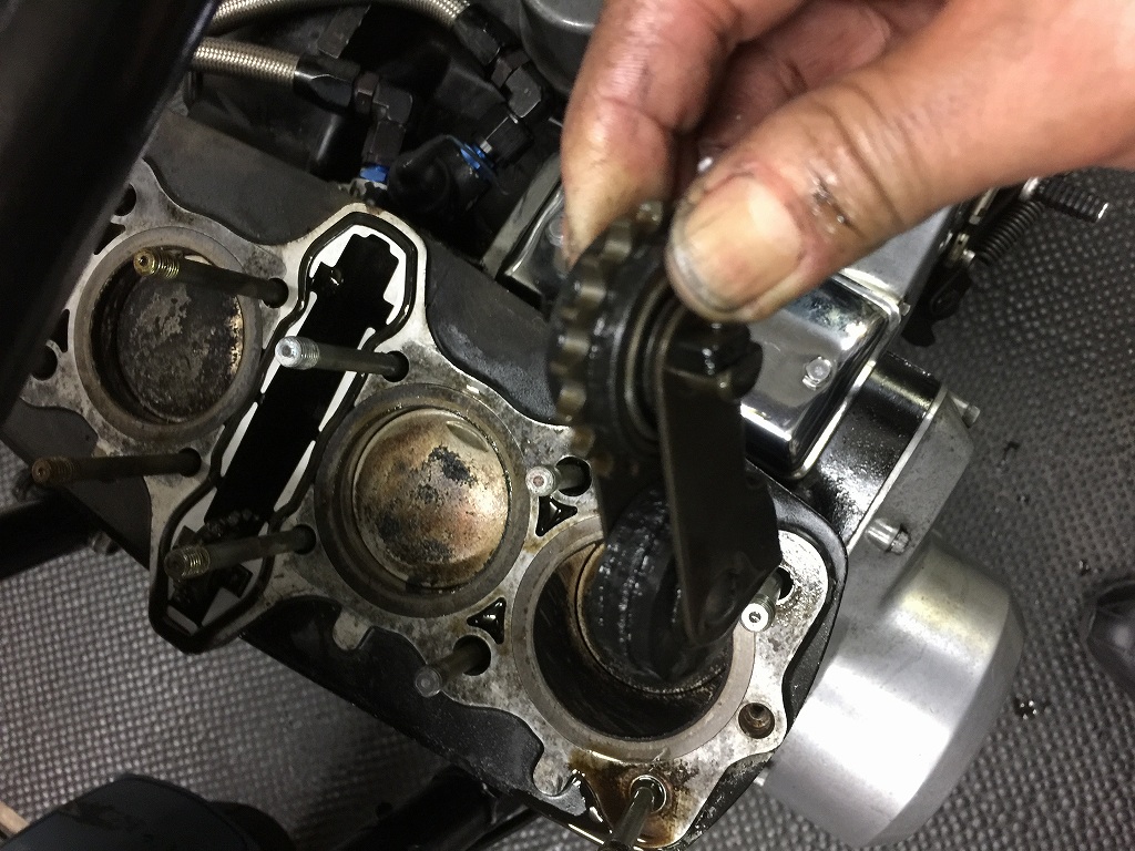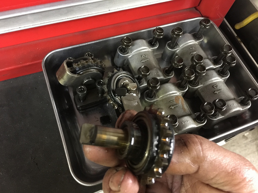 カムチェーンローラーは、ゴムの硬化は進んでいますが、摩耗はそれほどでもありません。