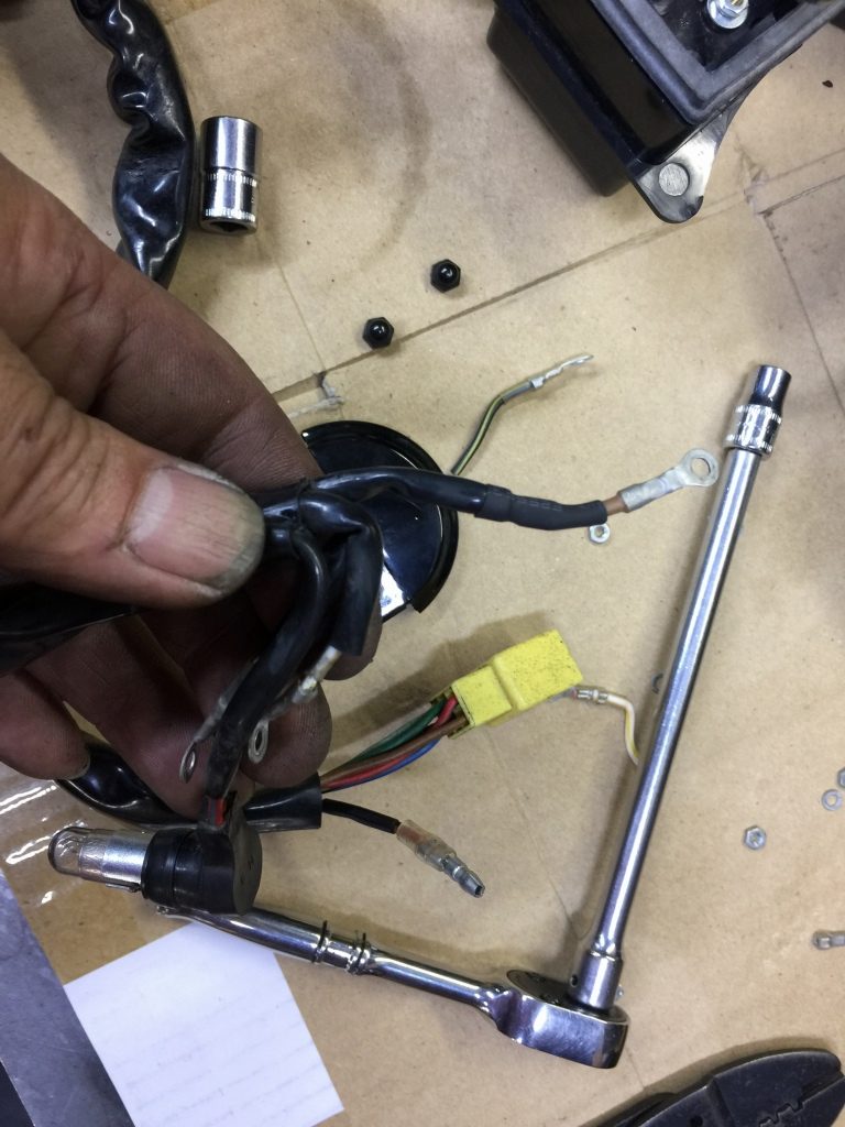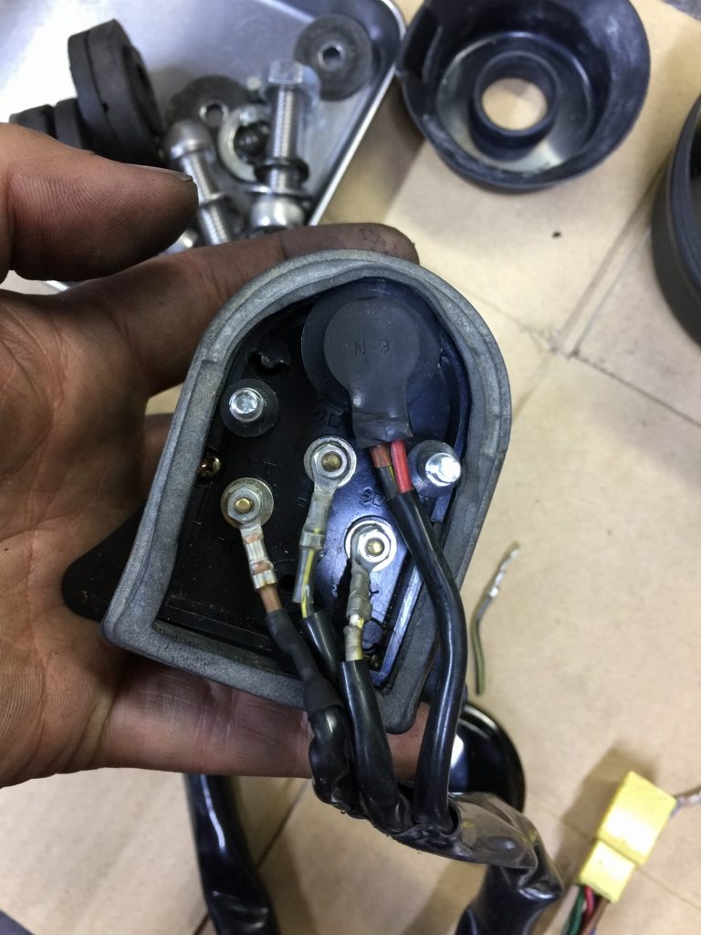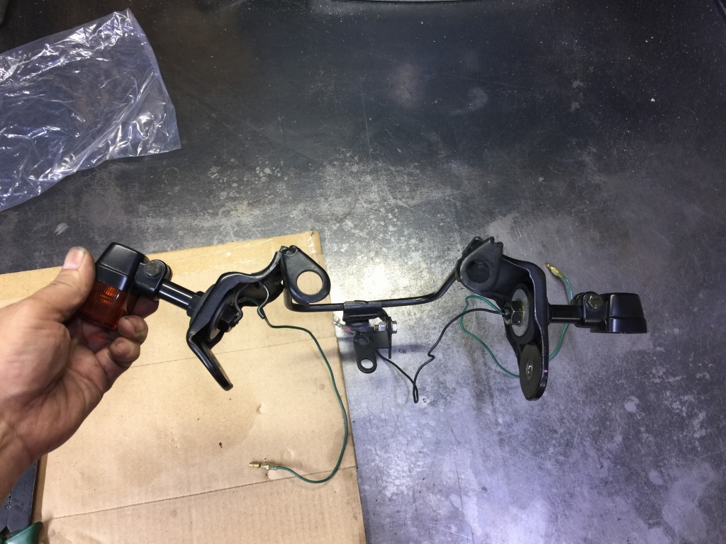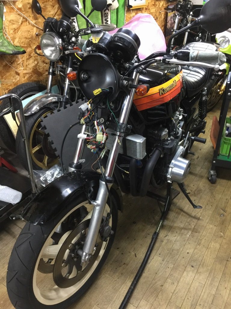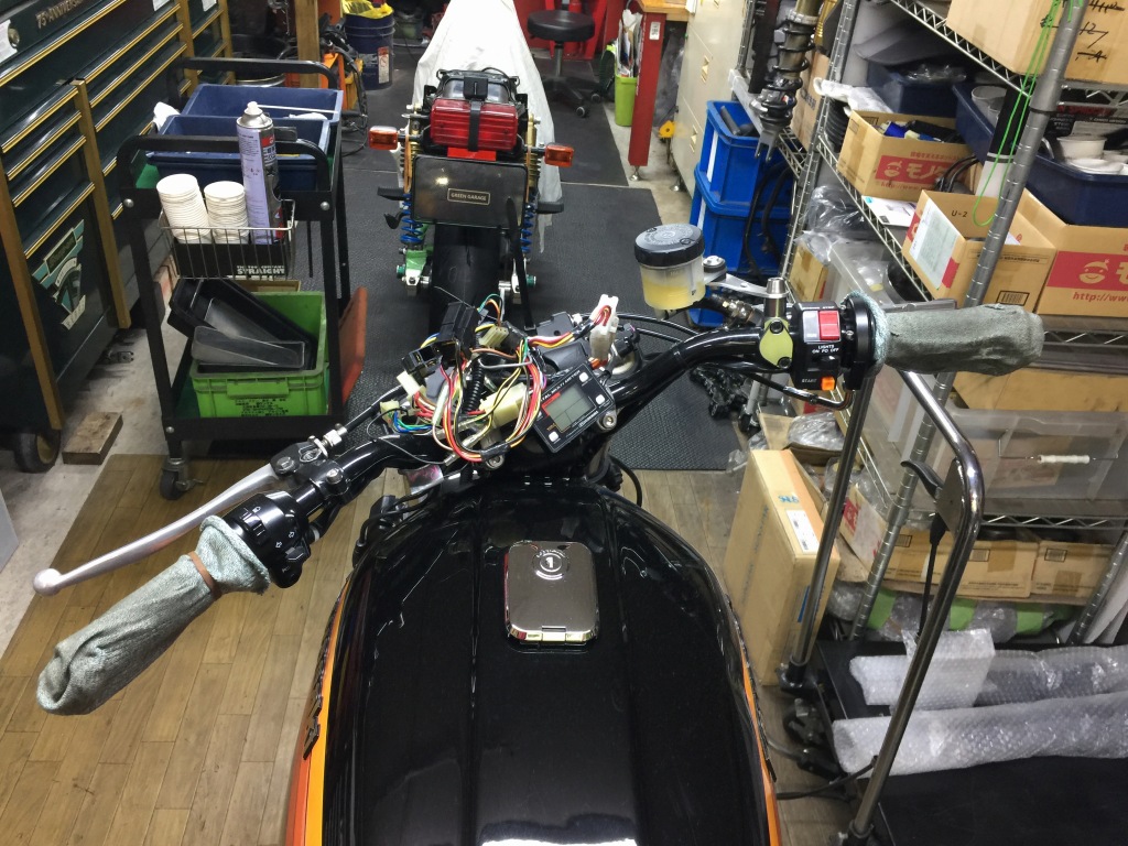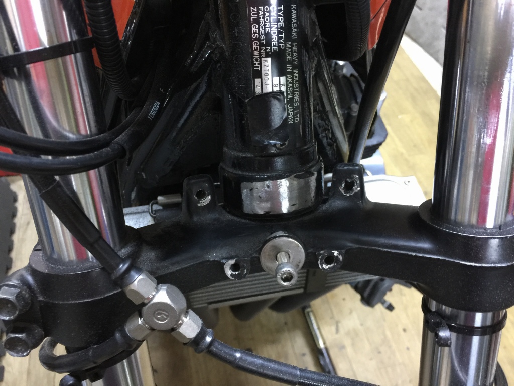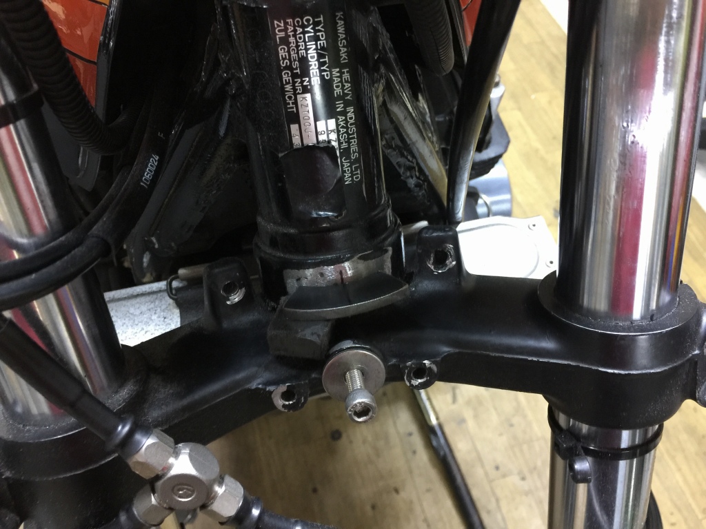 ステムへの取り付けはボルトオンです。カプラーが違うので配線は加工が必要です。こちらのメインハーネスはZ1000R2純正品。