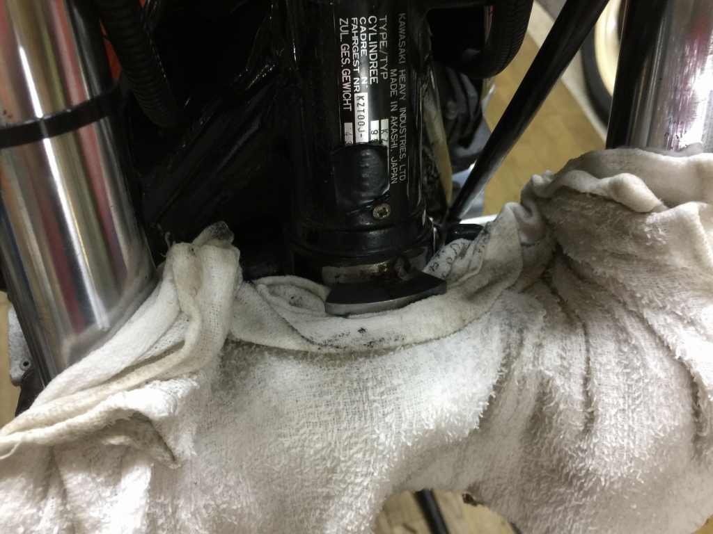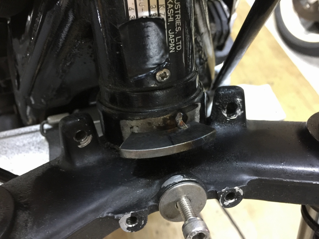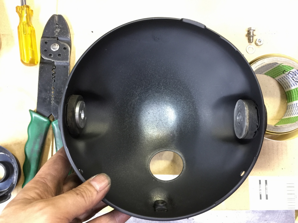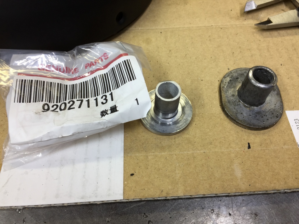 ヘッドライト内のアルミカラーも片方が割れました。純正は生産終了なのでZ1000Rのカラーを加工して使います。