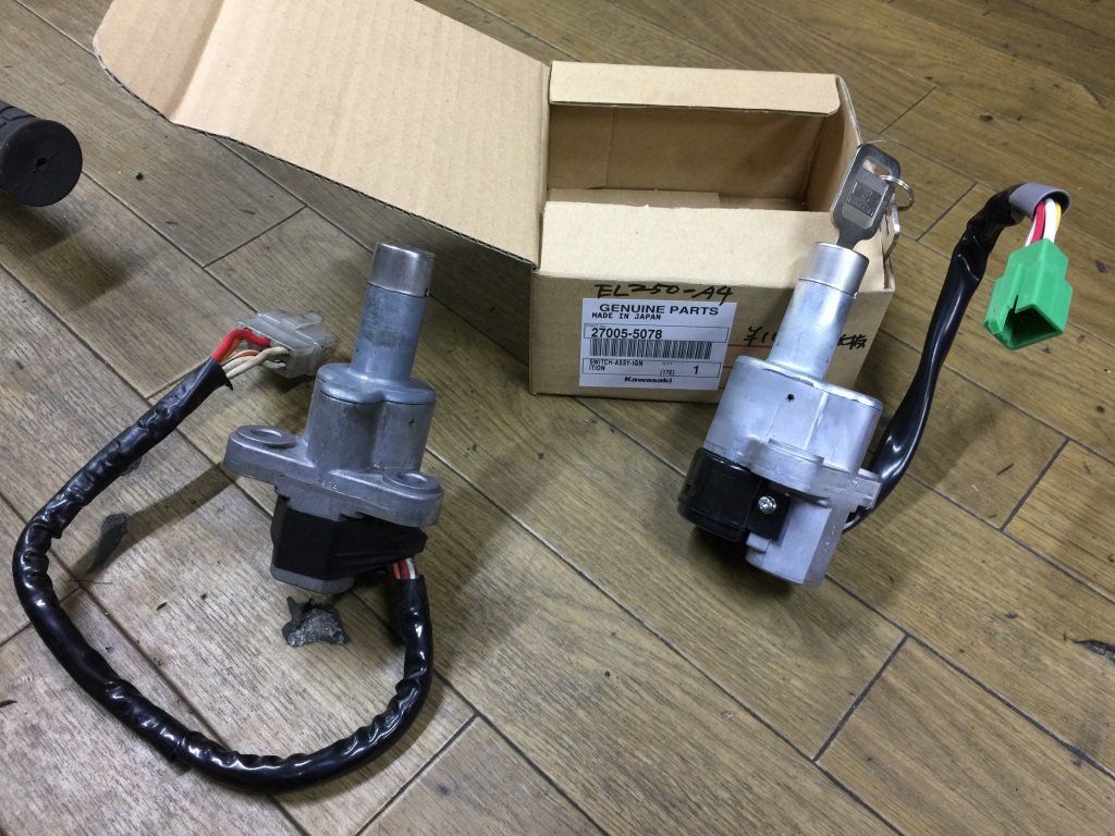 イグニッションキーは根元で折れたので、スイッチごと交換します。