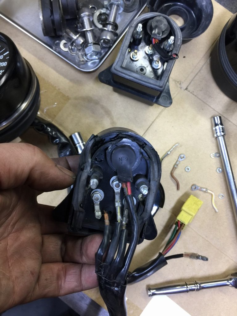 メーターはタコとオドが大破、スピードの本体はかろうじて無事。
