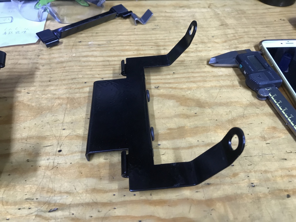 支給されたこちらのブラケット、足の部分を少し曲げてコアを垂直マウントできるようにします。