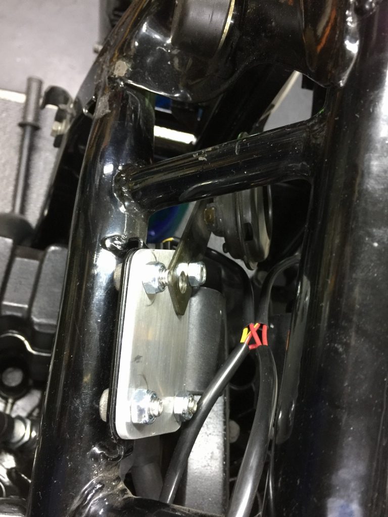 ホーンは、ステーに穴を追加工し、コイルブラケットに共締めします。