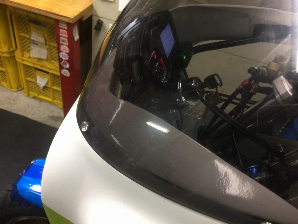 フロントカウルを装着します。ライダーからの景色はこんな感じです。
