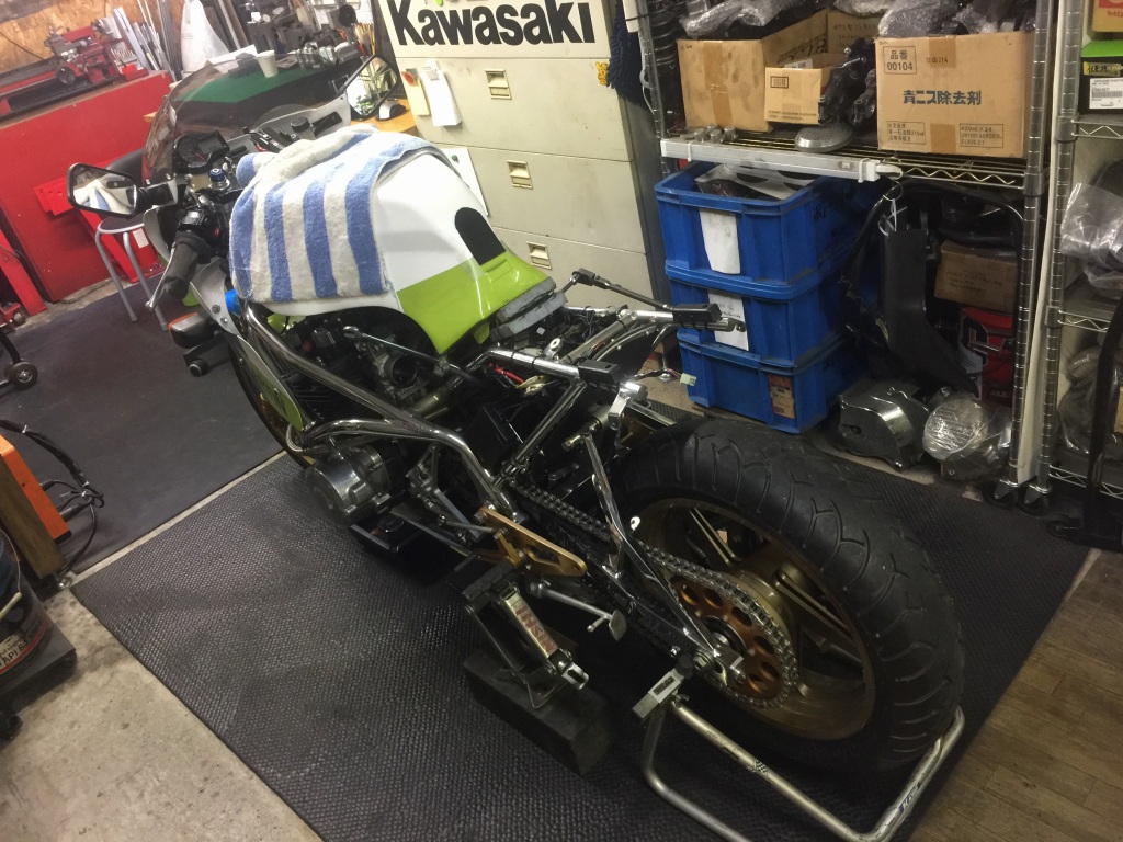 お持ち込みのリヤショックが取り付け可能か検討します。