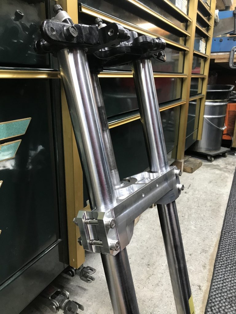 オフセットは50ミリで、トップブリッジもノーマルを使います。