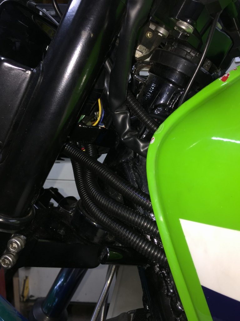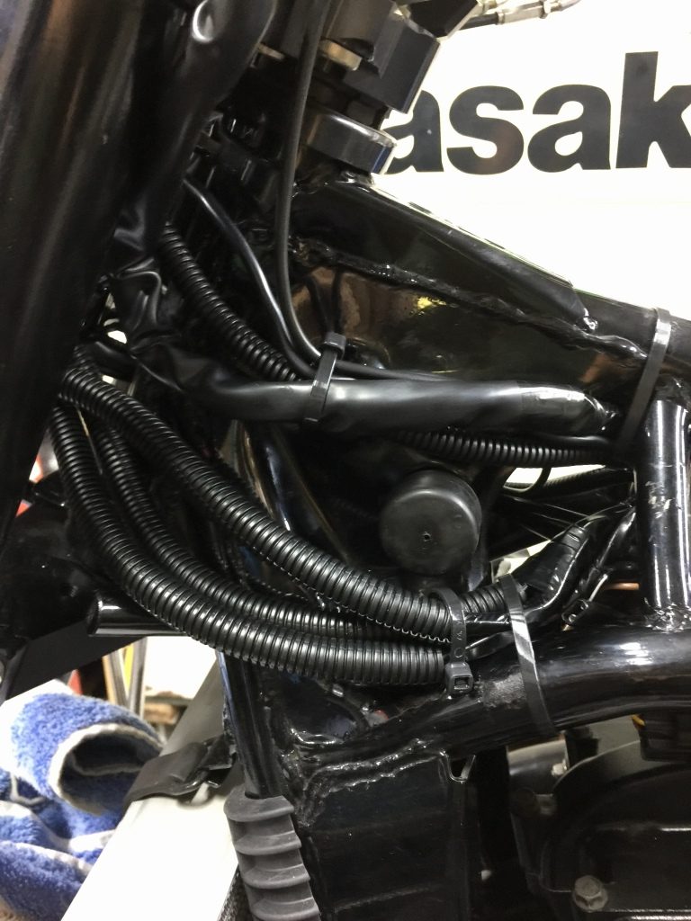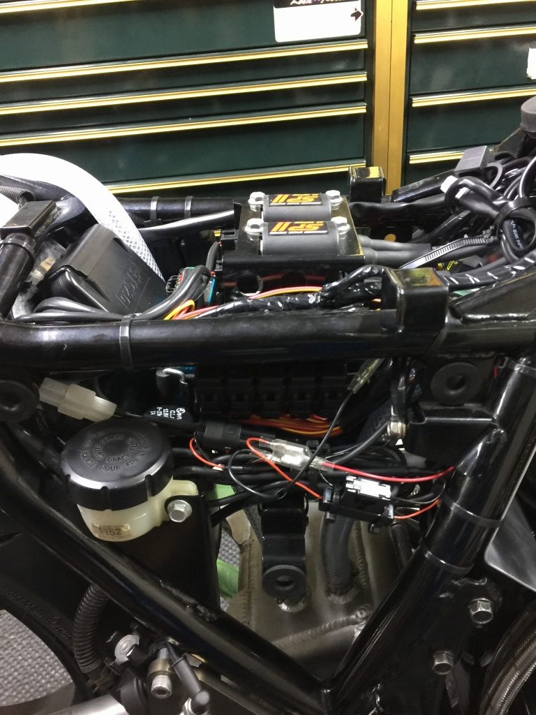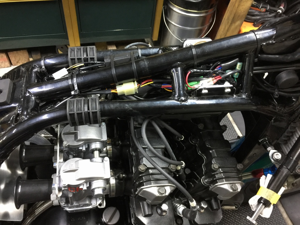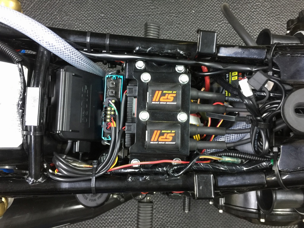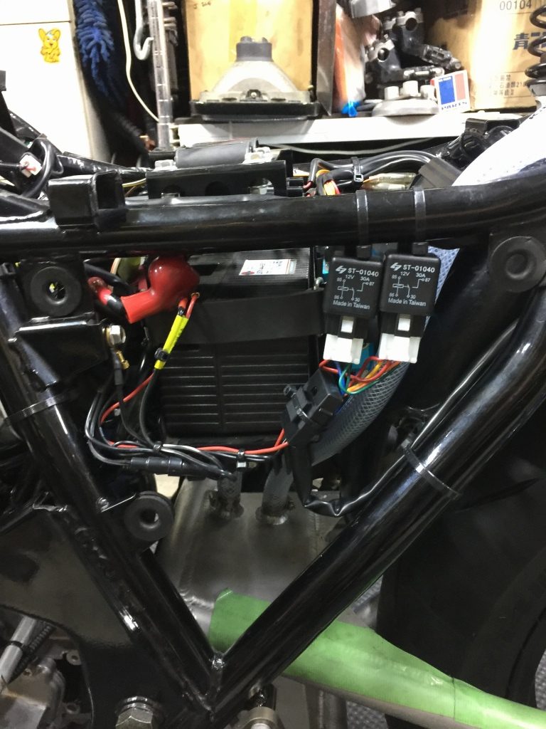 電装系は動作も全て確認し、ハーネスはフレームにしっかり固縛します。