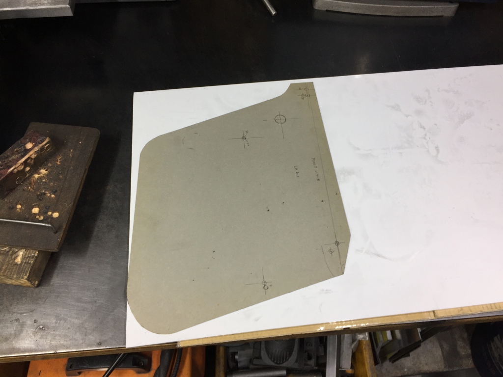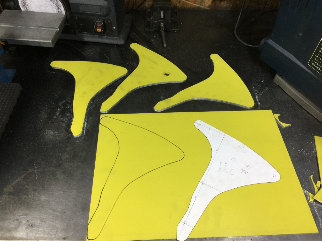 シートとテールカウルを繋ぎ、フレームと結合するためのプレートは、3ミリ厚のジュラルミン板から切り出します。