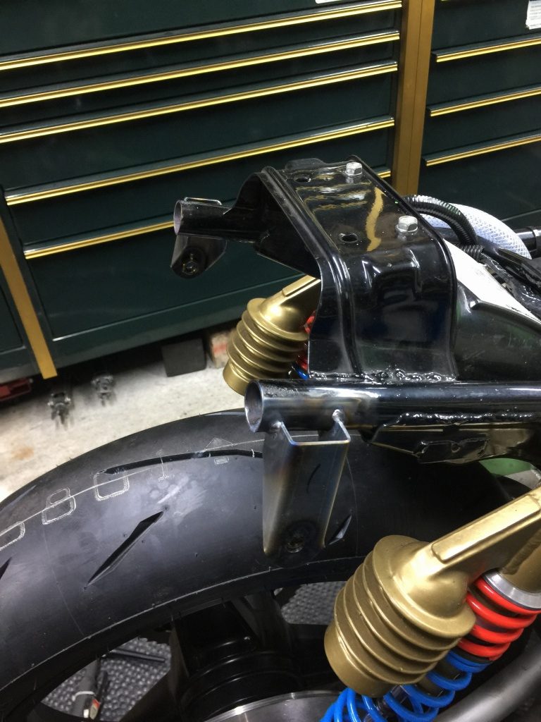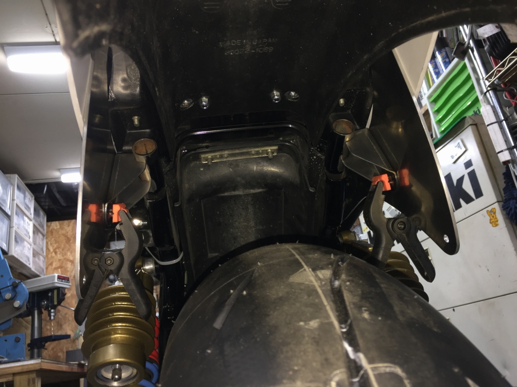 シート周りをフレームと結合するためのブラケットをカットしたシートレールの根元にセットします。