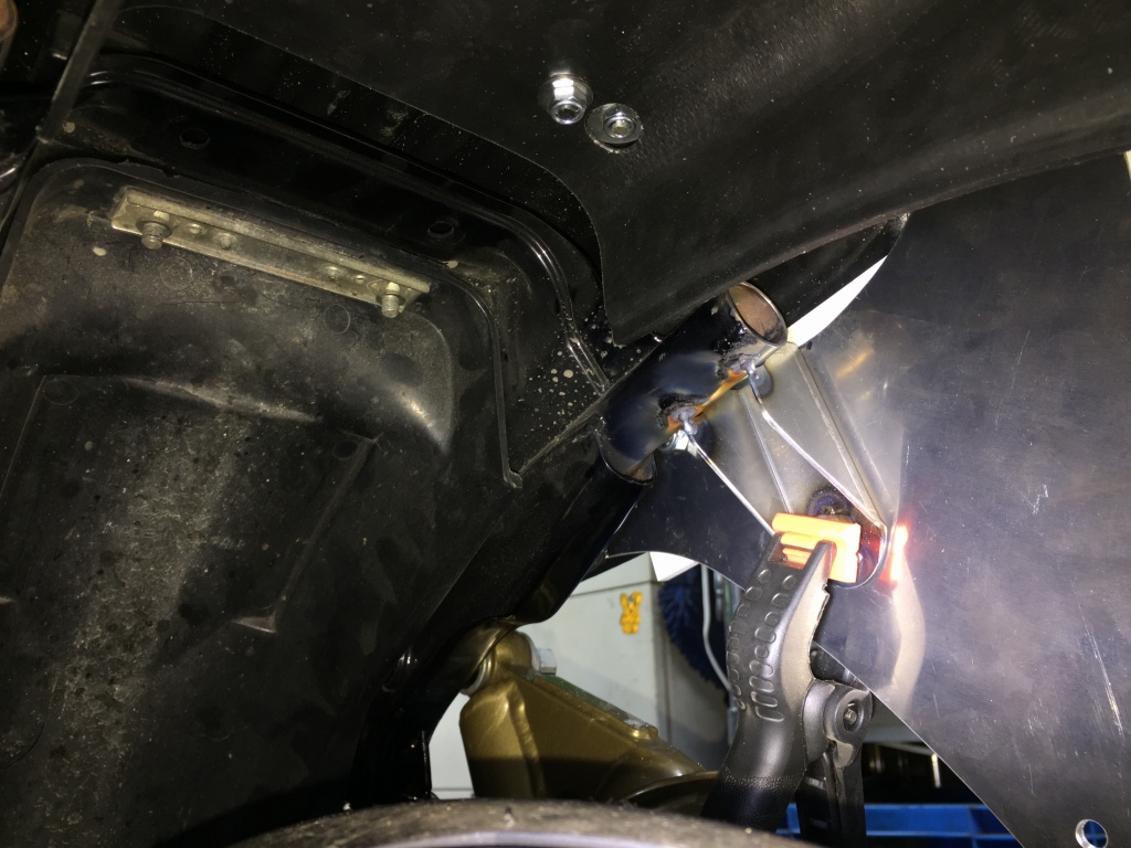 ブラケットをクランプで固定し、この状態で溶接で仮止めします。