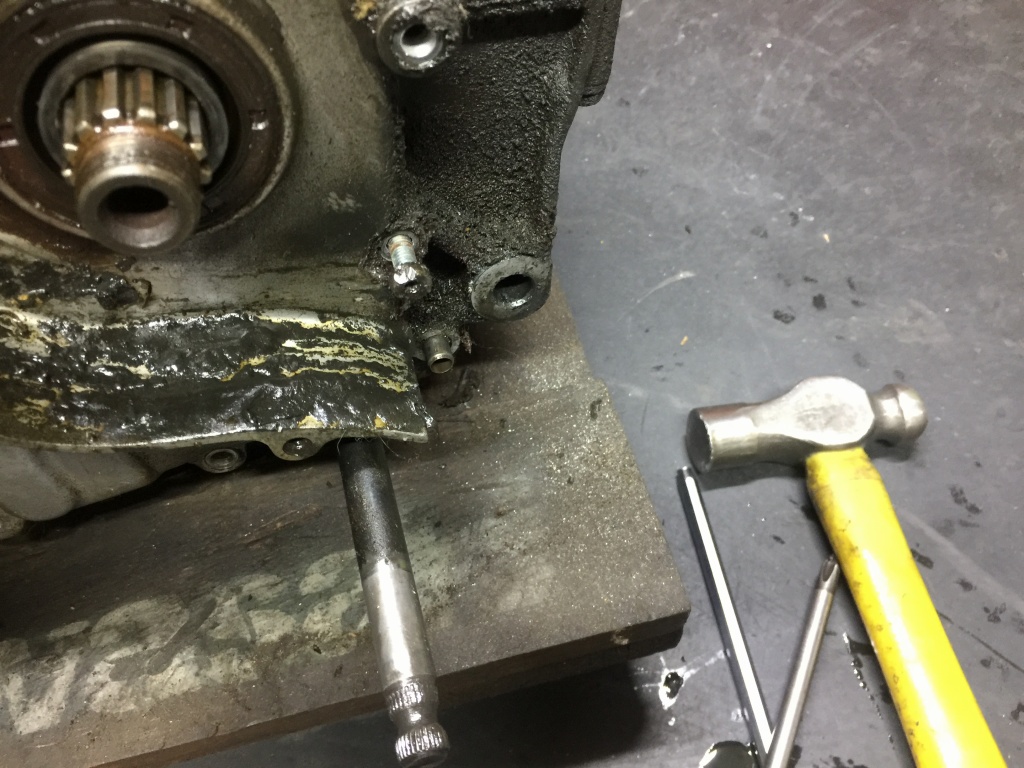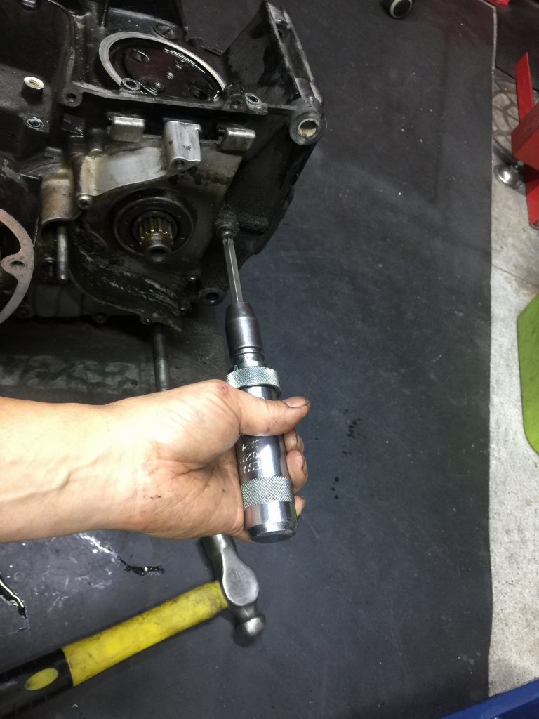 このビスは頭がほとんど削れて回せないので、タガネで叩いて回します。