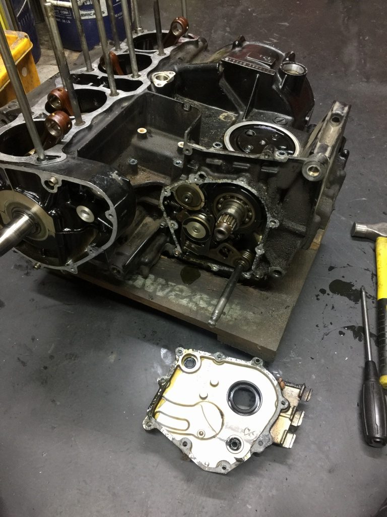 ミッションカバーが外れました。Mk2前期型のエンジンですね。