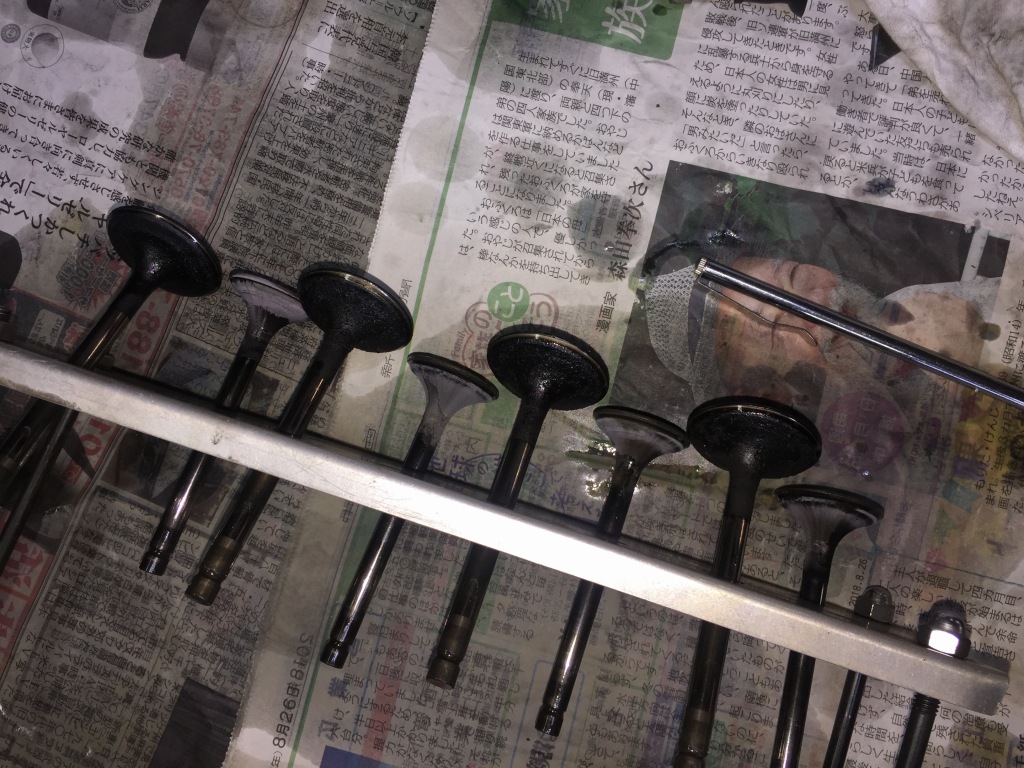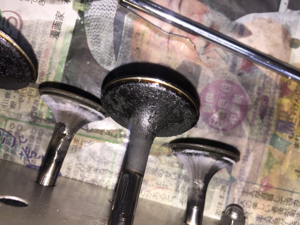 バルブガイドのガタは少なめです。バルブの消耗も少ないので継続使用します。