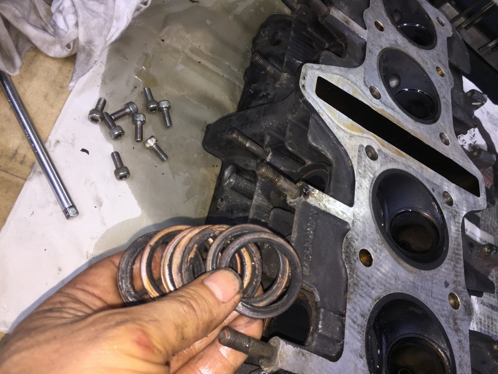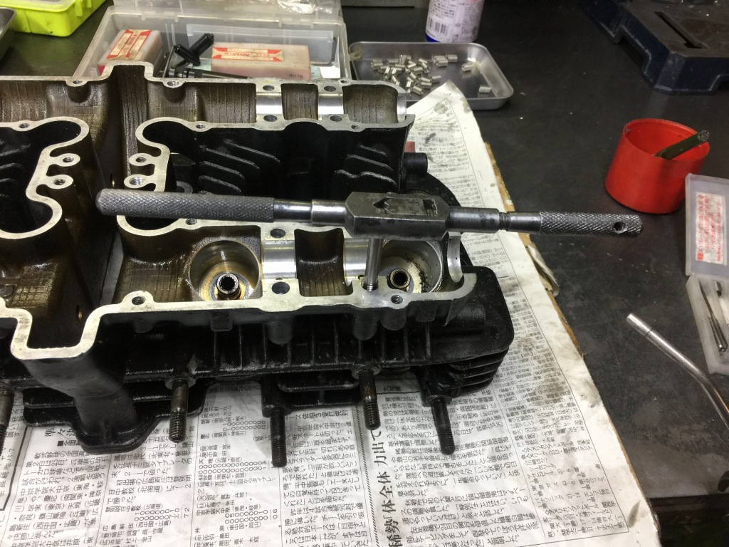 ヘリサート挿入後は、必ずタングを折り取り、回収します。本日はエキゾースト側8本終わって終了。残りは明日の作業で。