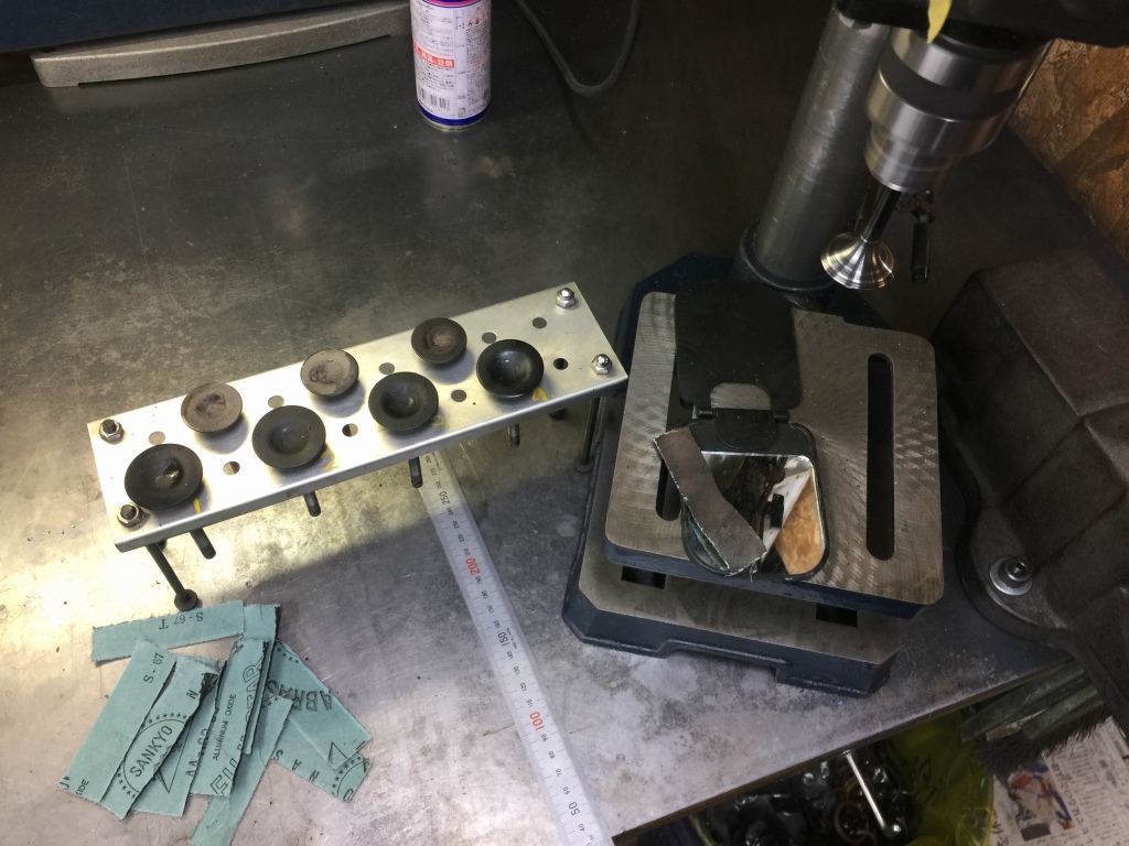 バルブのカーボンは、ボール盤とサンドペーパーで落とします。