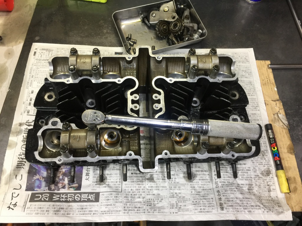 カムホルダーのトルクを再度確認すると、エキゾースト側2本、インテーク側1本トルクが掛からなくなりました。