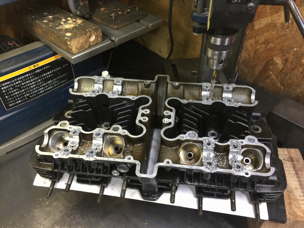 カムホルダーネジは全数、ヘリサート加工することに。先ず下穴を開けます。