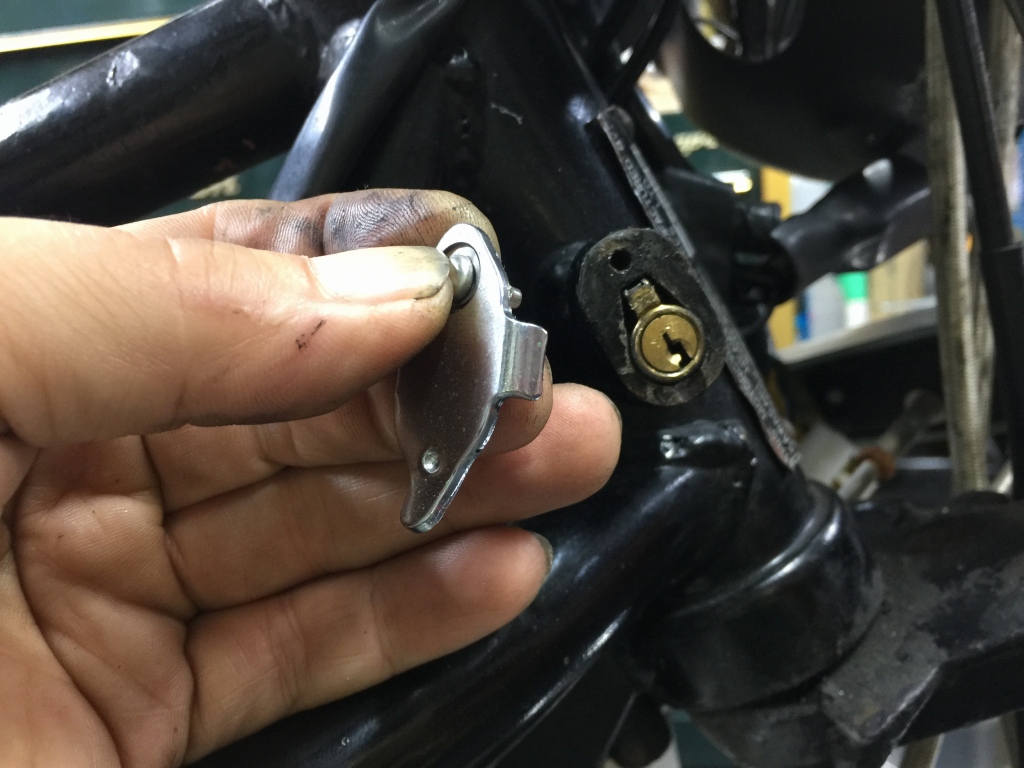 先ずはハンドルロックシリンダーの交換です。蓋を取ります。