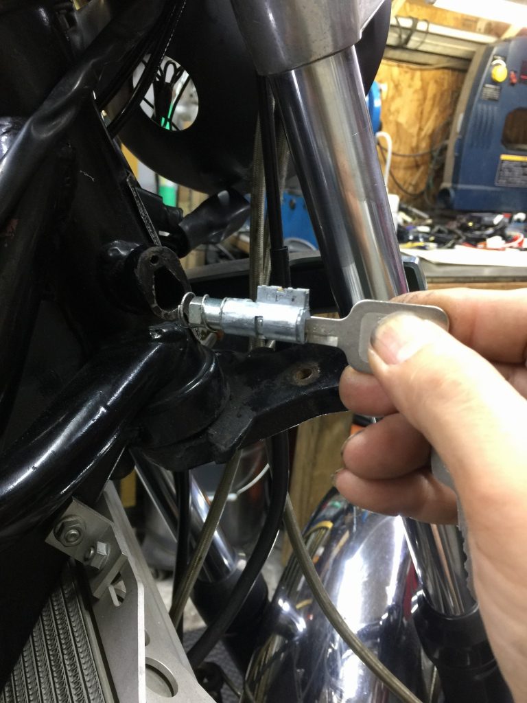 イグニッションスイッチハーネスのカプラーも、メインハーネス側に合わせて適合する爪付きカプラーに交換します。