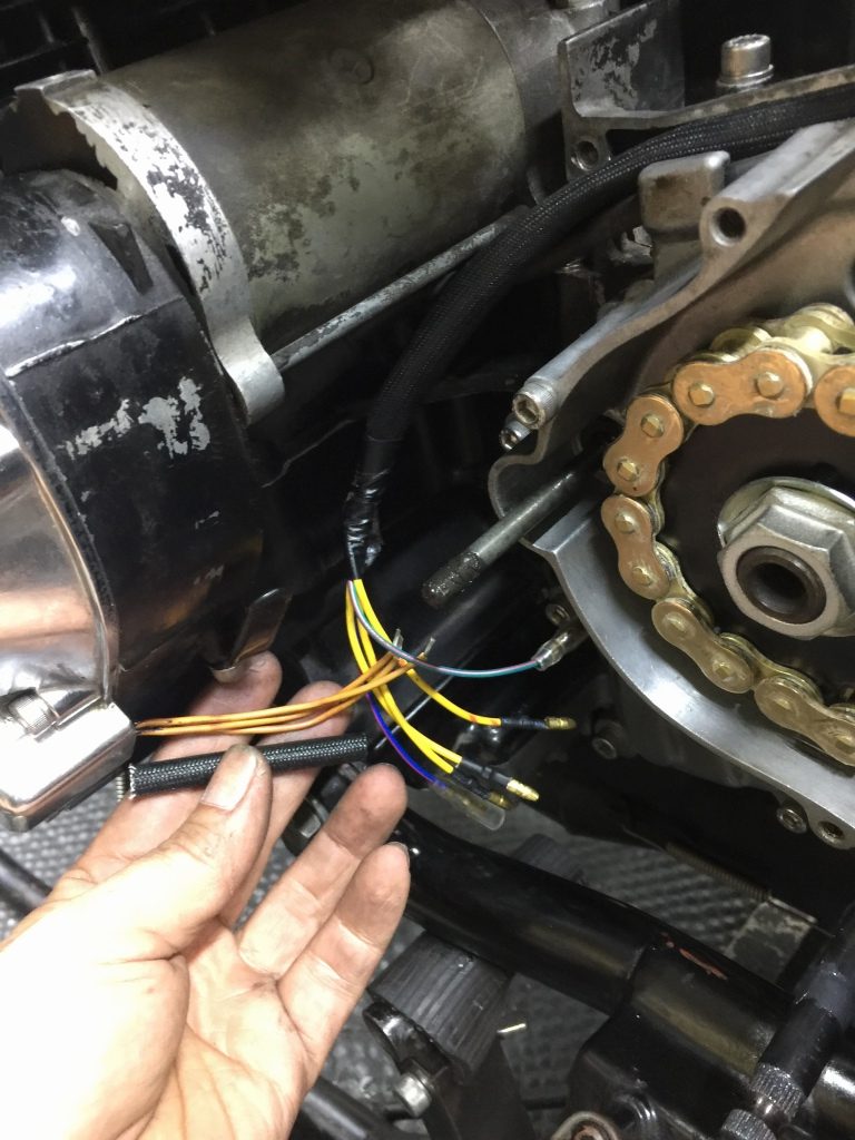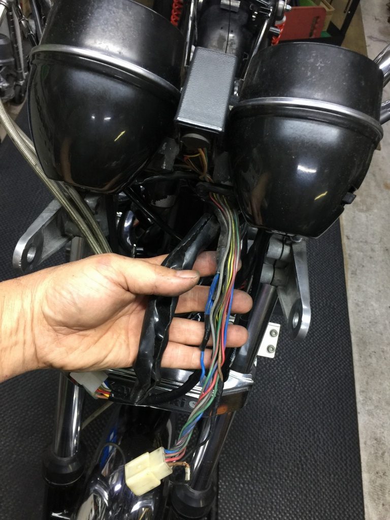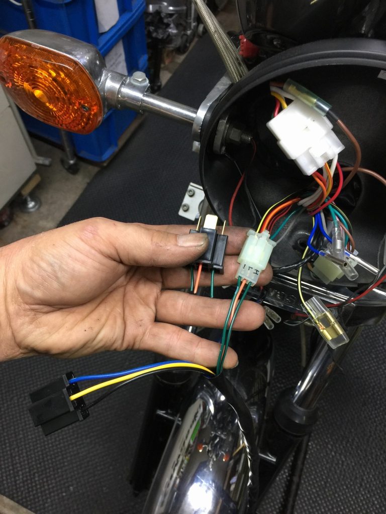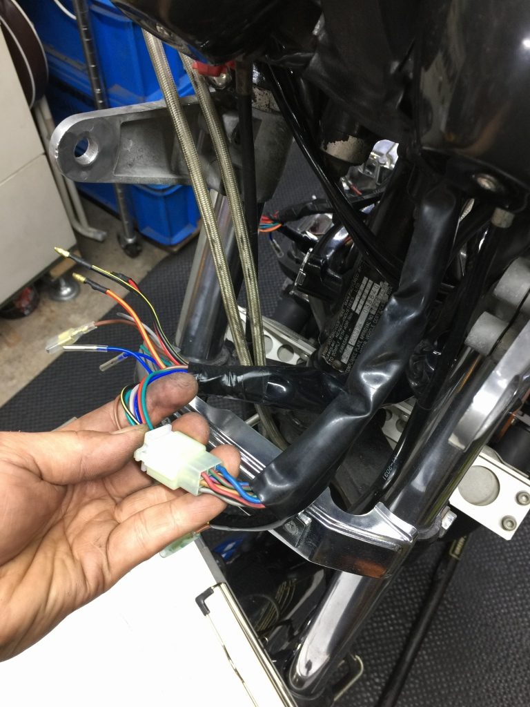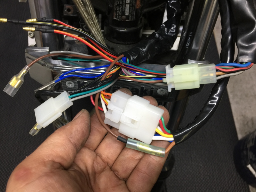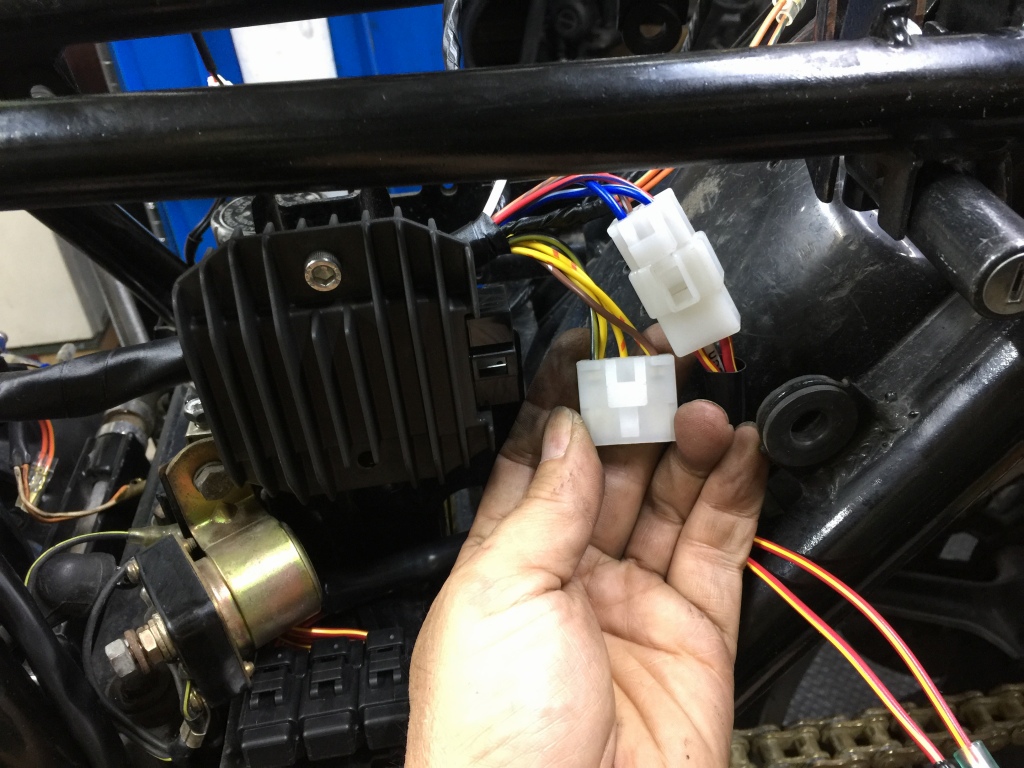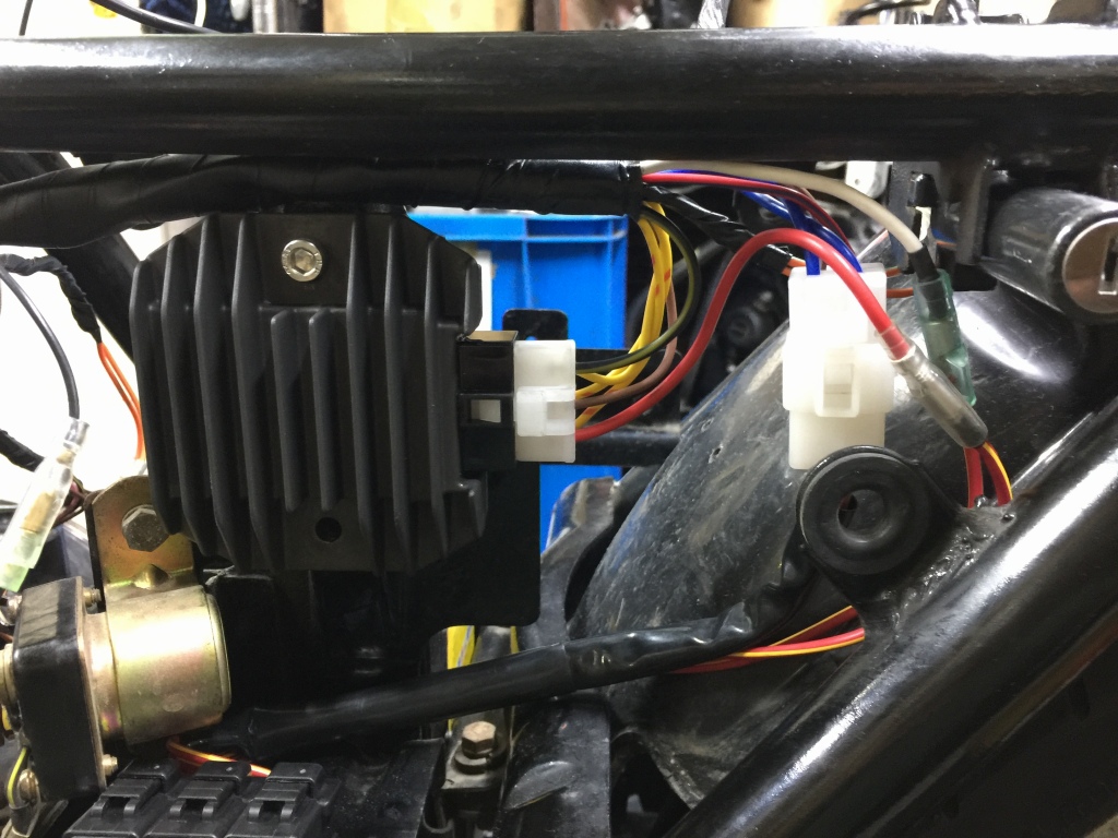 ゼファー750純正新品レギュレーターを使いますが、配線の並びが若干違うので修正してから接続します。