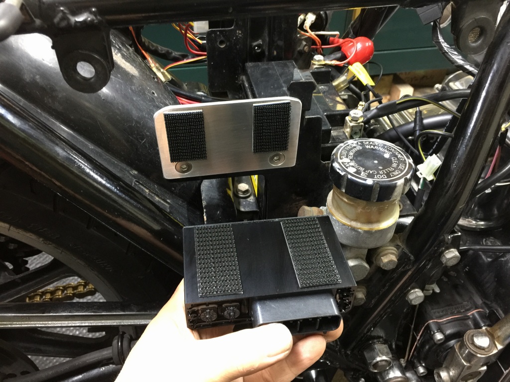 SP2本体のブラケットを製作して、デュアルロックファスナーで取り付けます。