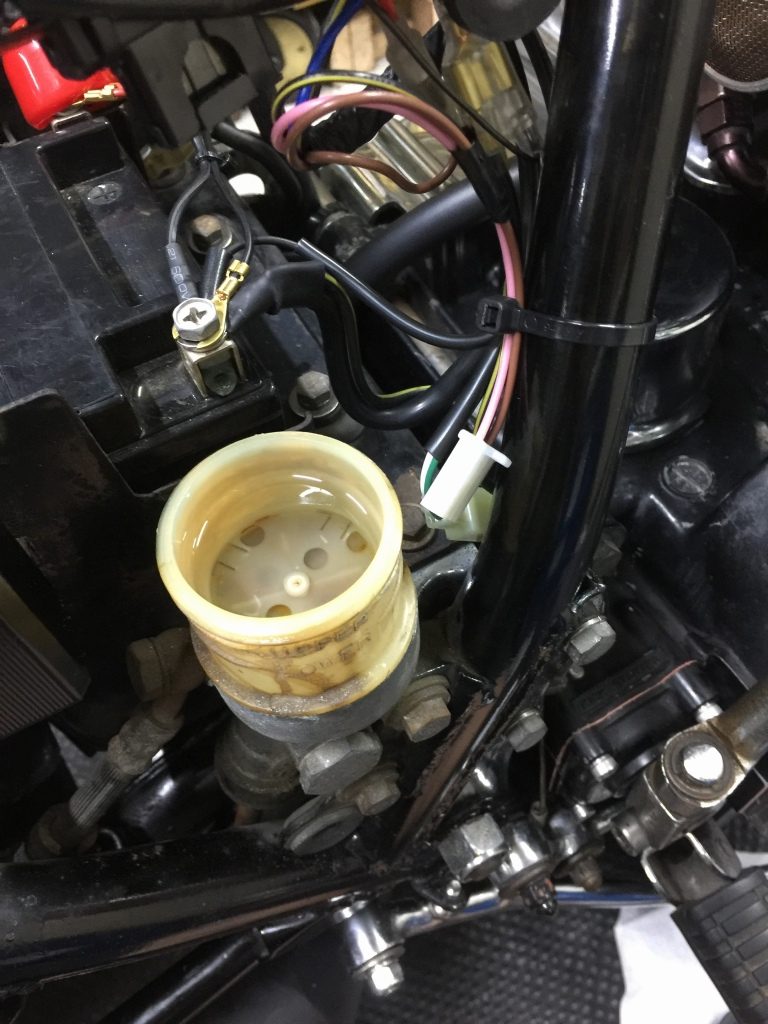 最後に、リヤのブレーキフルードがだいぶ古いようなので交換します。