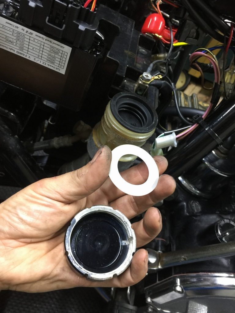 ブリーザーのキャップもタイヤのエアバルブ用が付けてあったので、3ヶ所とも純正のゴムキャップに交換します。