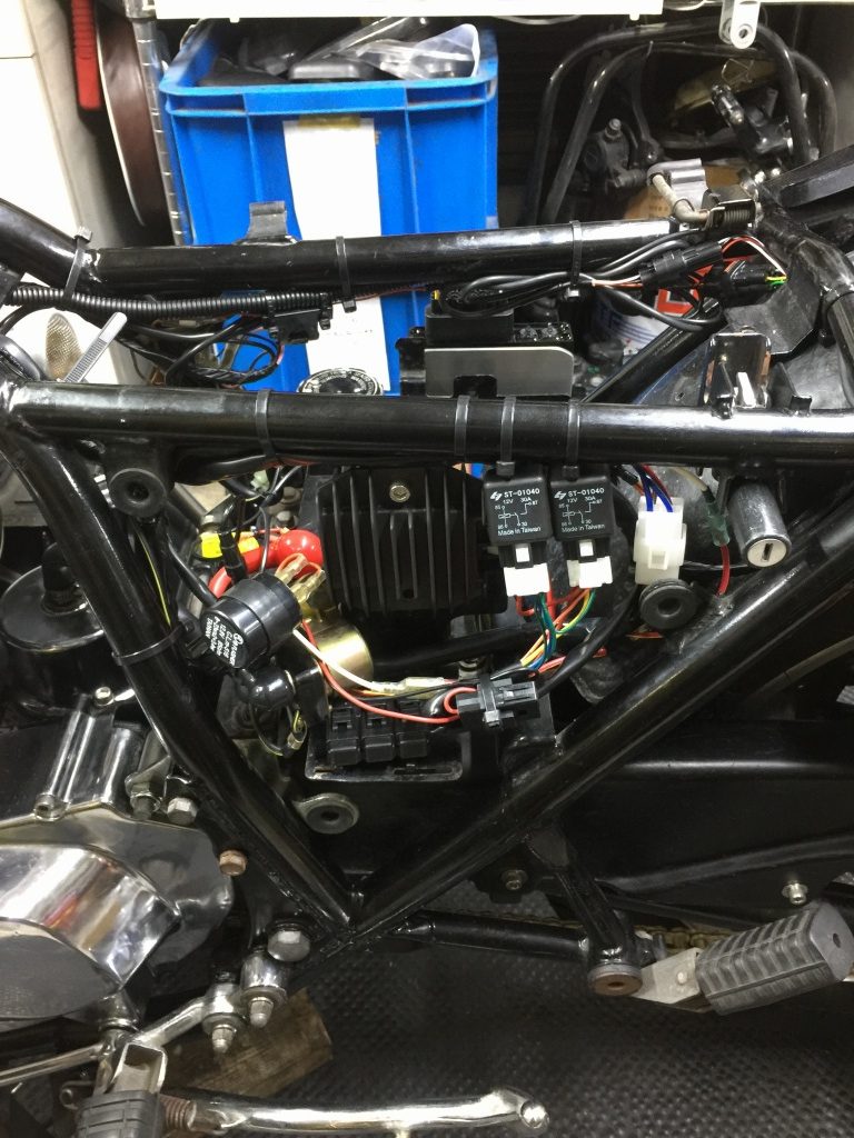 電装品の艤装が完了しました。ハンドルスイッチとメーター周り以外は全て新品になりました。これで信頼性がかなり上がるでしょう。