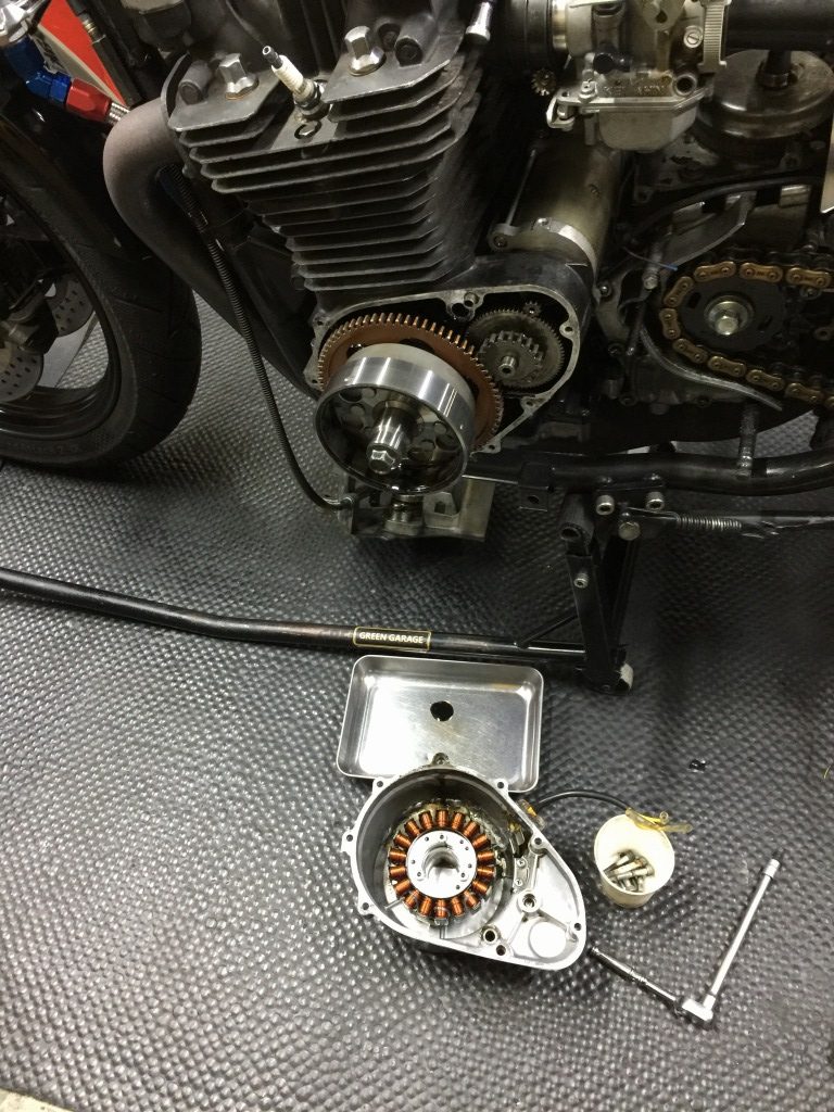 ステーターコイル系が僅かに違うのでコイルは外してカバーを当てます。