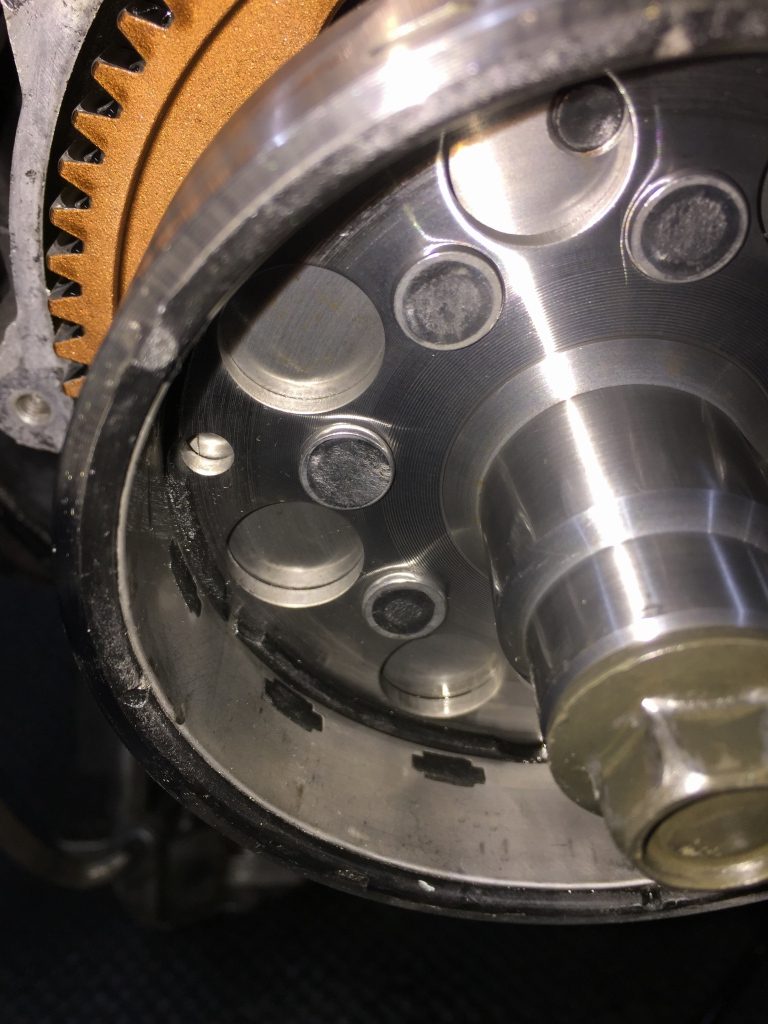 少し気になる点があります。スタータークラッチのマウントボルト3本の内、2本は穴から見えていて1本は隠れています。