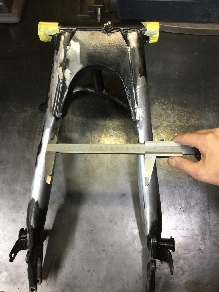 160ミリタイヤまで適合するように製作しておいたワークスタイプのスイングアームですが、