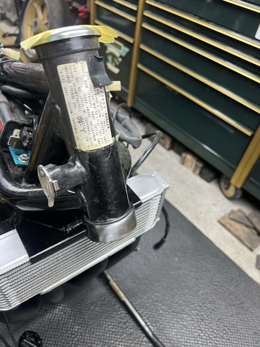 新しいハンドルスイッチと社外のメインハーネスの接続の改造が終了しました。社外のハーネスで回路図が無く、使われている配線の色もカワサキ車と全く共通性が無いので、回路をはあくするところから始めないといけないので非常に時間がかかりました。ホーンの回路も全く変わるので、新たにホーンハーネスを新設するなどの対応が必要でした。左のハンドルスイッチはW650純正で、ウインカーがプッシュキャンセルなので便利です。