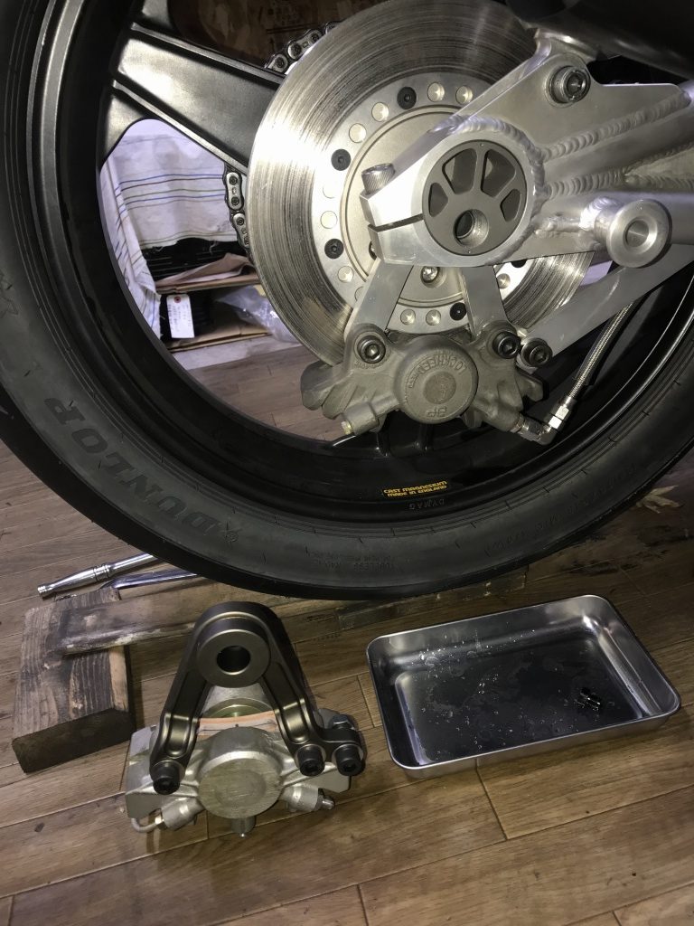 取り付けるのは、今回製作したキャリパーサポートとフロント用のS1キャリパーです。
