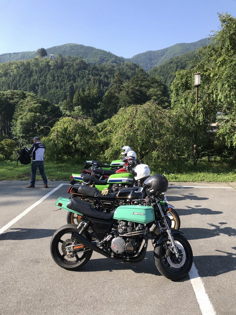朝7時、本日の参加はこの5台です。早朝の涼しいうちに走ります。