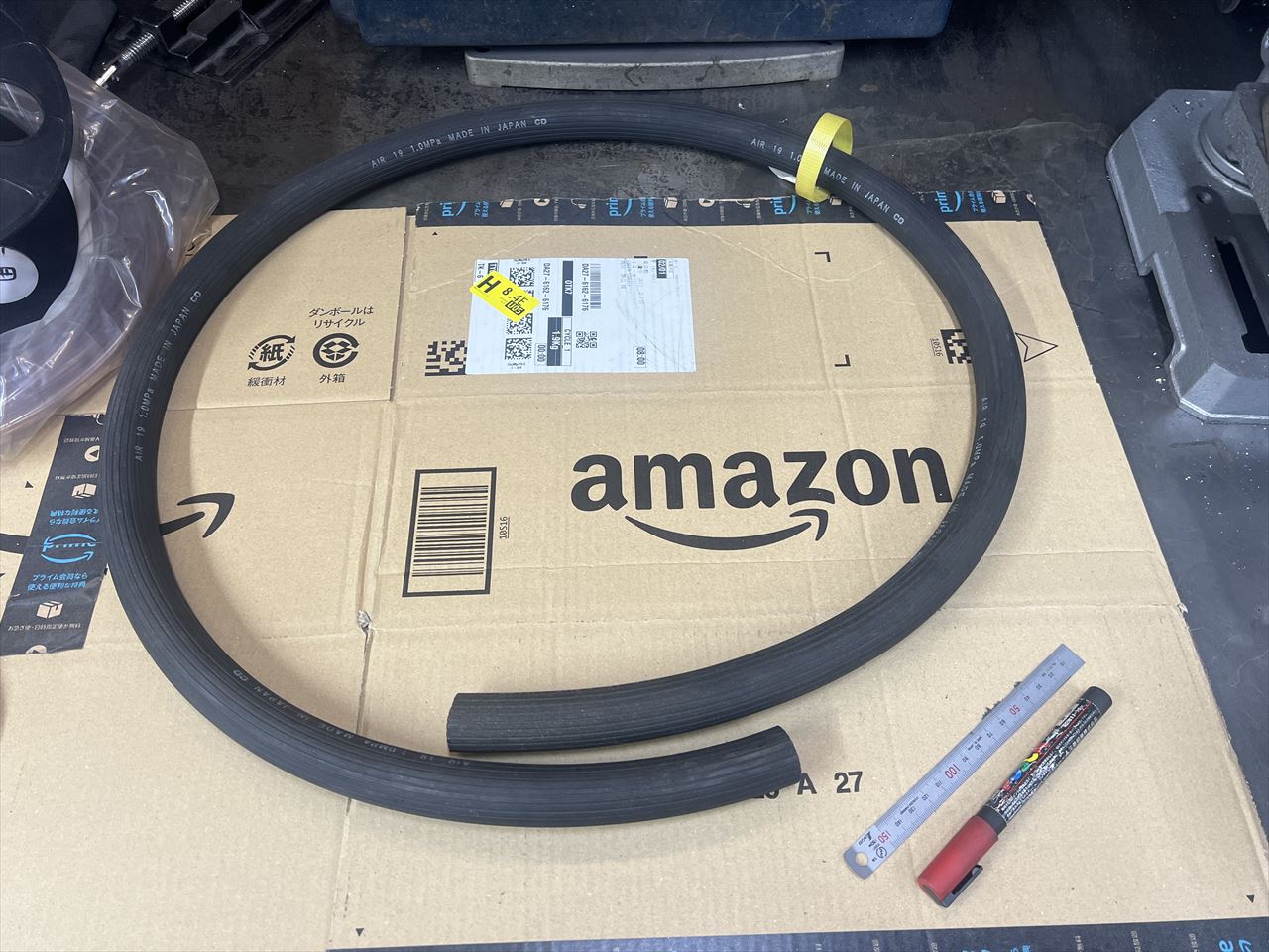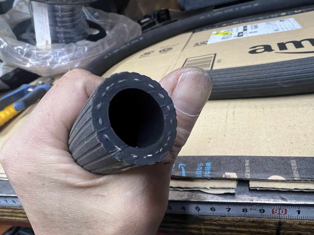 フレームスタンド製作の続きです。フレームに当たる部分の緩衝材兼滑り止めとして、こんなゴムホースを使用しています。