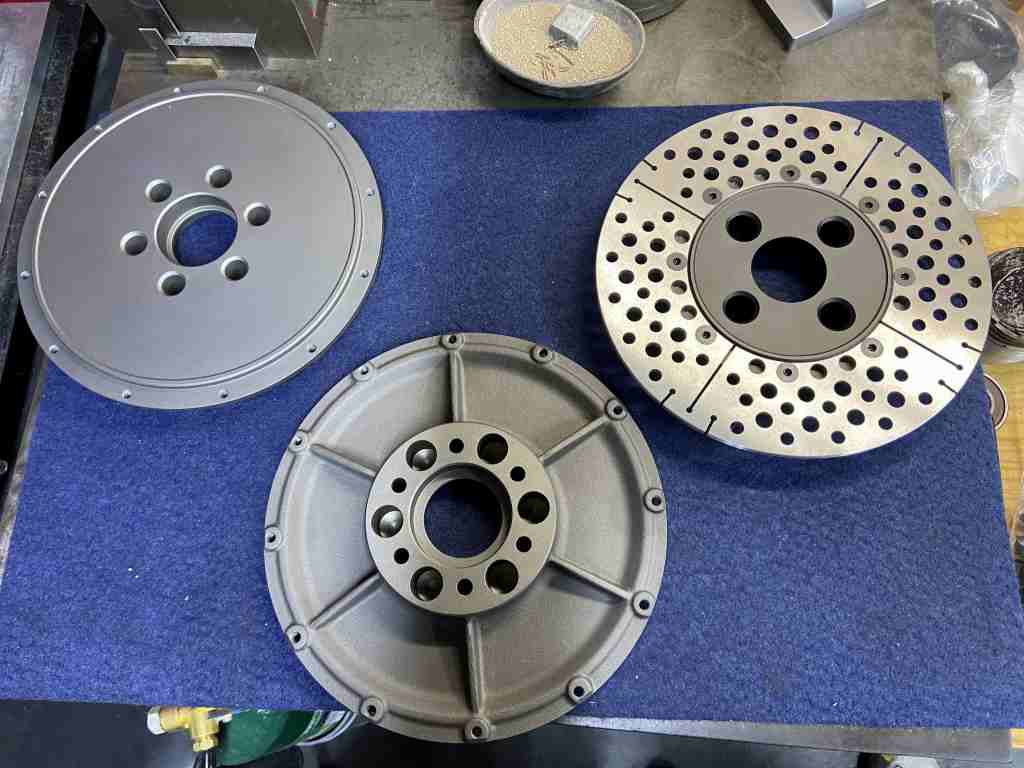 製作したS1ローターのインナーをアルマイトしました。こちらはアルマイト前で、右上が色見本です。