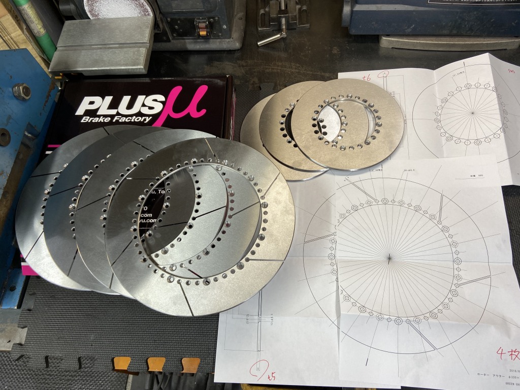 S1アウターローターができてきました。弊社でS1と同寸法に設計し、製作はプラスミューさんにお願いしています。フロントはφ330ミリ、リヤはφ234ミリです。