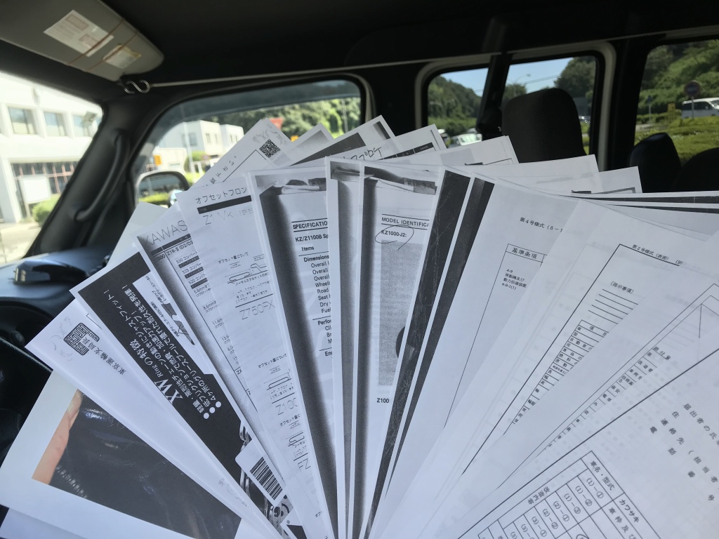 今回、新規登録から最初の車検となり、排気量変更の構造変更を行うため、管轄の陸事に事前審査の書類を提出に来ました。
