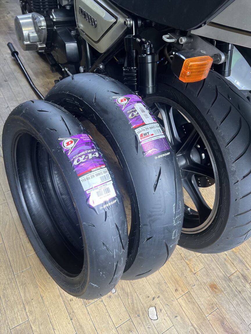 既存のロードスマートから、今回はα14Zに変更します。ハイグリップタイヤにして、コーナーリングをもっと楽しみたいとのこと。