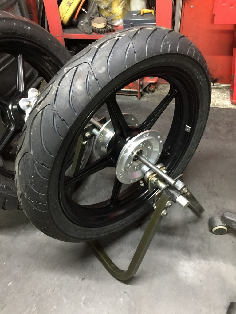 ワイドホイール化のご依頼です。前後ホイールとタイヤはお持ち込みのこちらを使います。
