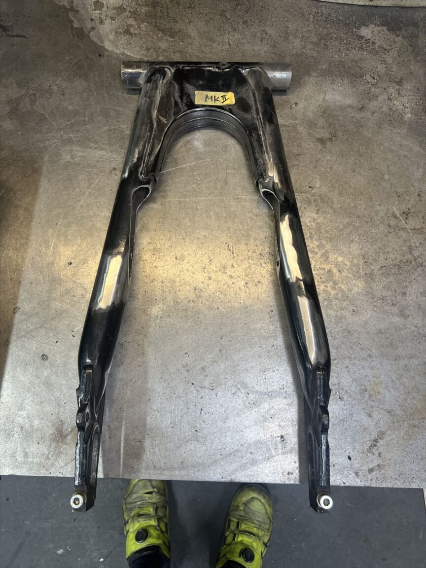 ワークススイングアーム製作の続きです。ワイド加工の切り欠き部の仕上げが終わりました。