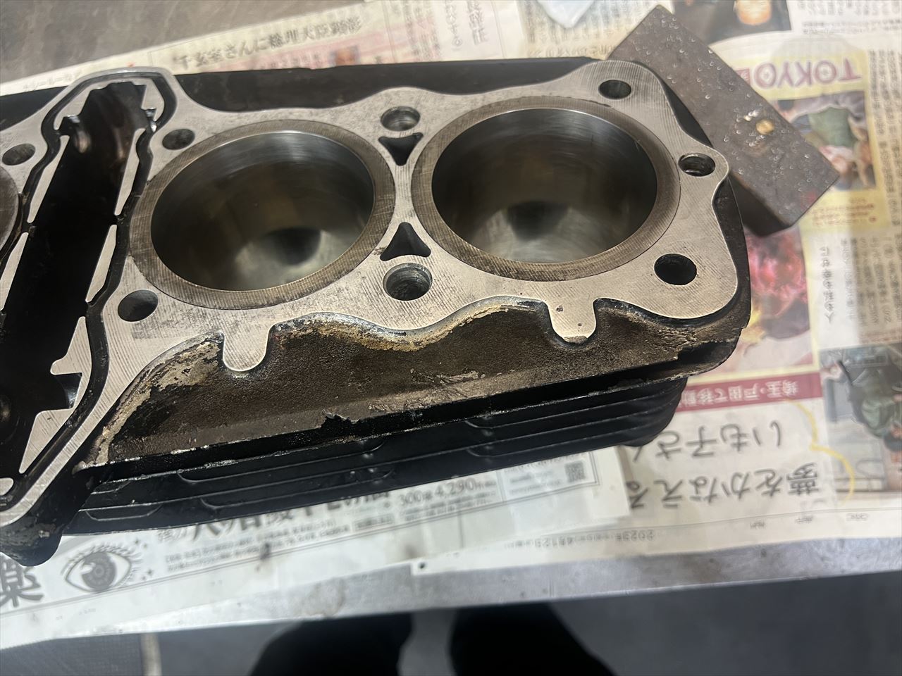エンジンの分解点検が終わり、次は塗装の準備などです。シリンダーは小さいフィン欠けが4ヶ所あるので、塗装の前にフィンを修正することに。
