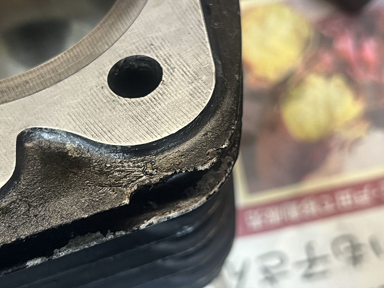 エンジン分解点検の続きです。詳細に点検するため、各部品を洗浄します。ヘッドはカーボンも落とします。エキゾーストポートは堆積したカーボンでだいぶ狭くなっていました。