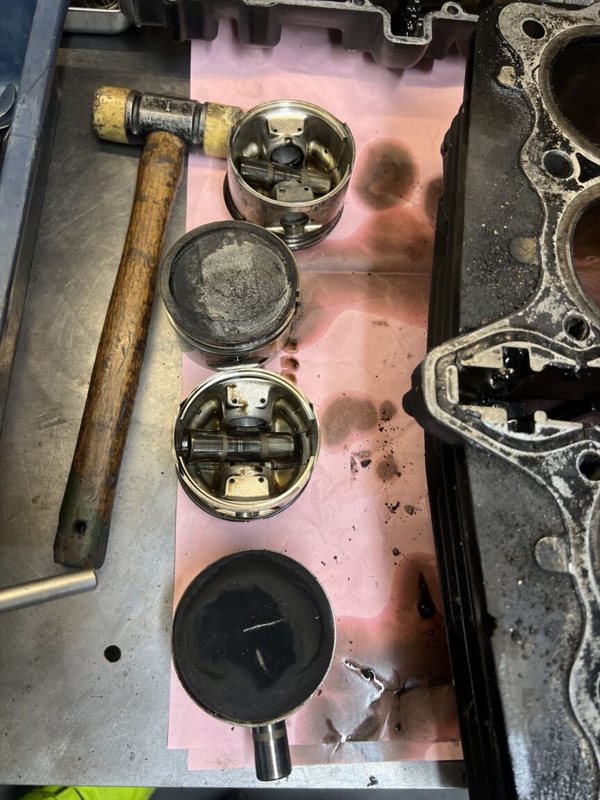 エンジン分解の続きです。プーラーでピストンピンを引き抜いて外します。