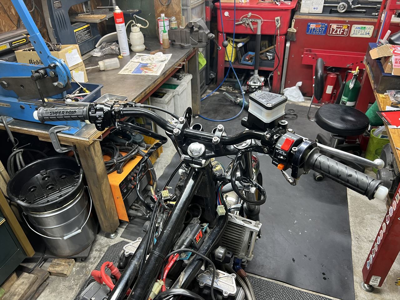 マスターを取り付けます。左右のハンドルスイッチも劣化していたので更新しました。右は高品質なアクティブ製のOWタイプ。左は品質も操作性もデザインもいいW650純正新品です。