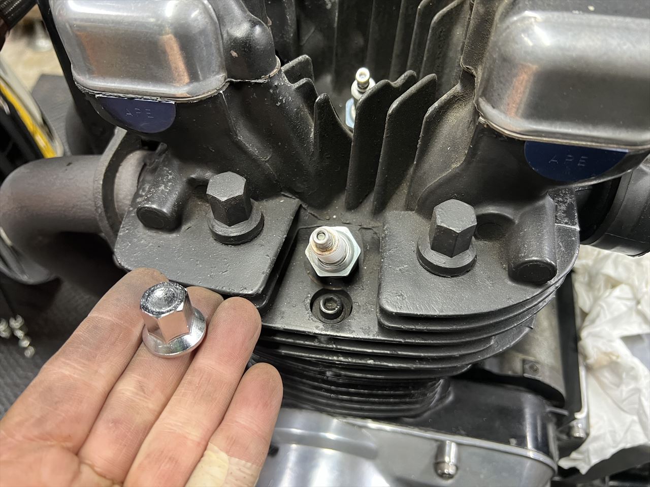 ヘッドナットも純正のクロームメッキ品に交換します。